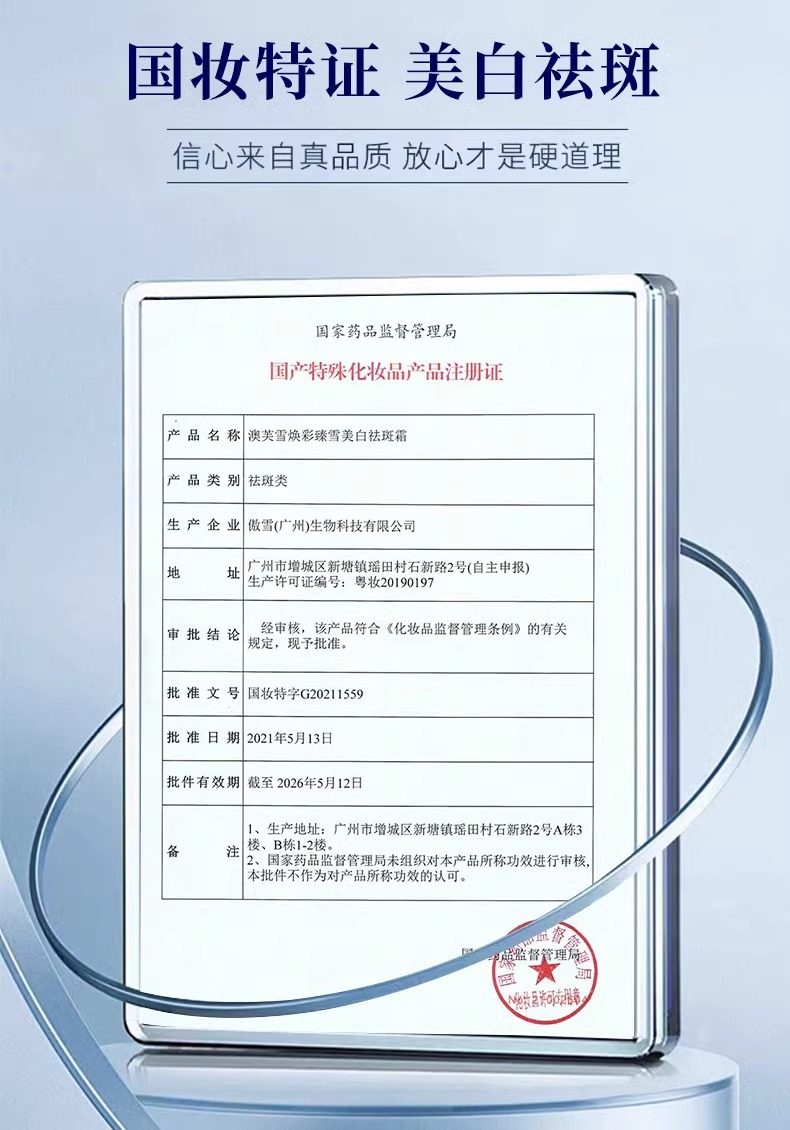 377澳芙雪焕彩臻雪美白祛斑霜淡化色斑黄褐斑雀斑官方旗舰正品2AZ