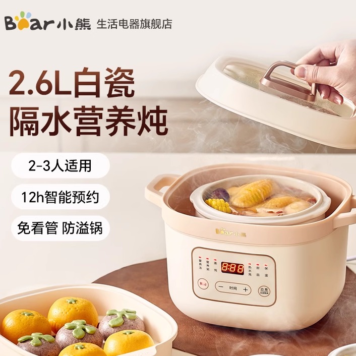 小熊电炖盅隔水炖家用全自动炖盅陶瓷电炖锅煲汤炖汤锅煲粥锅官方