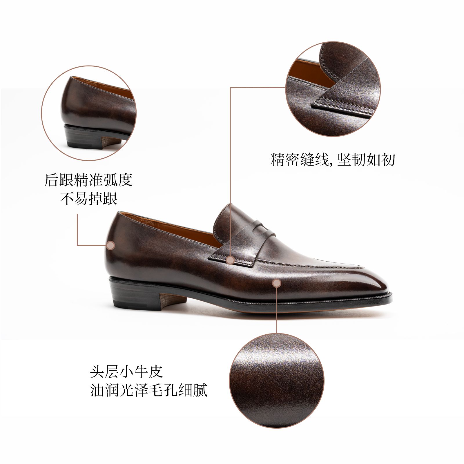 拙履【典藏】流玉方头博物馆小牛皮便士乐福鞋男鞋