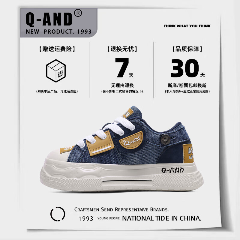 奇安达秋季2025新款厚底透气增高百搭潮流厚底板鞋大头帆布鞋男鞋