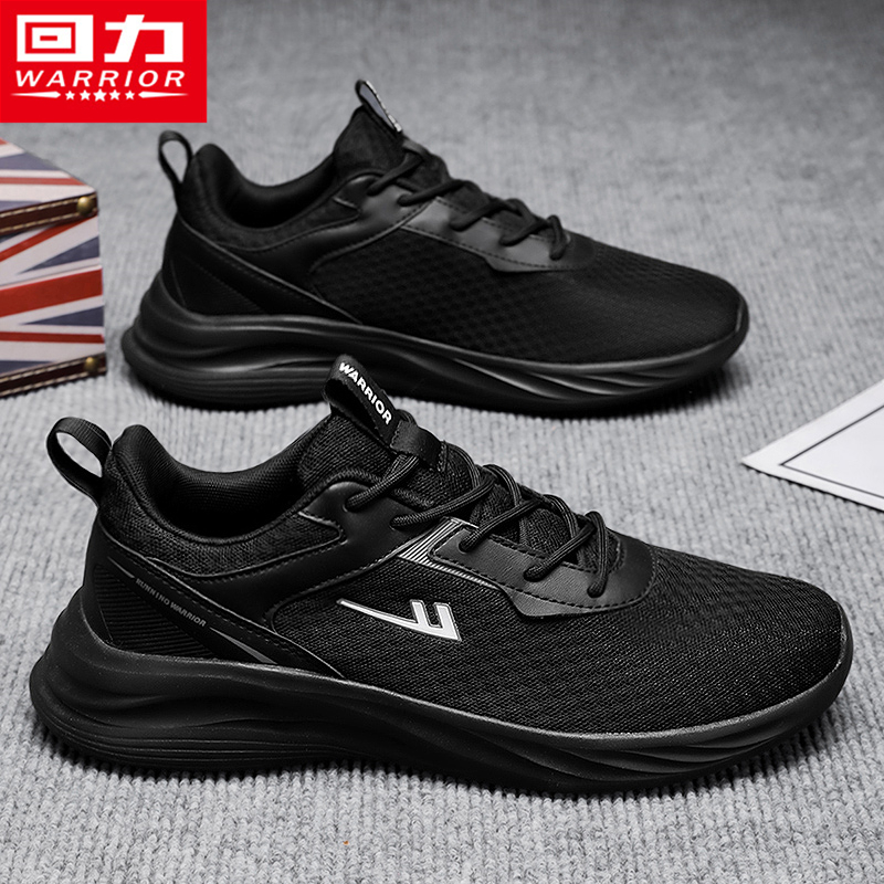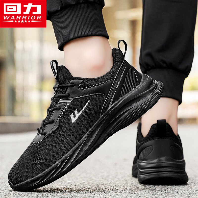 回力男鞋夏季透气网面运动休闲软底轻便跑步大码薄款防臭黑色网鞋