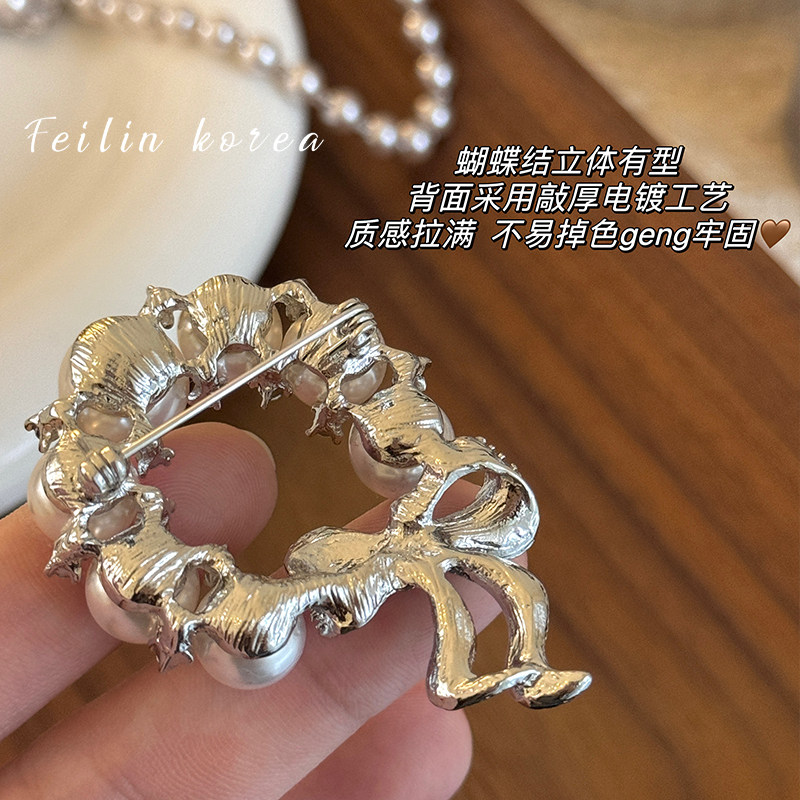 设计感小众珍珠钻蝴蝶结胸针