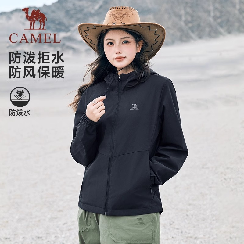 骆驼运动外套女户外徒步单层登山服加绒防水防风保暖轻量夹克上衣