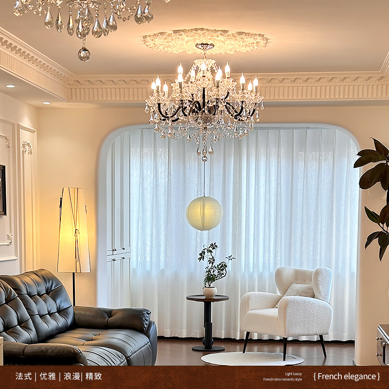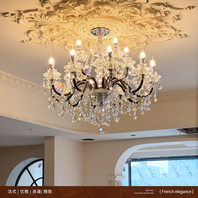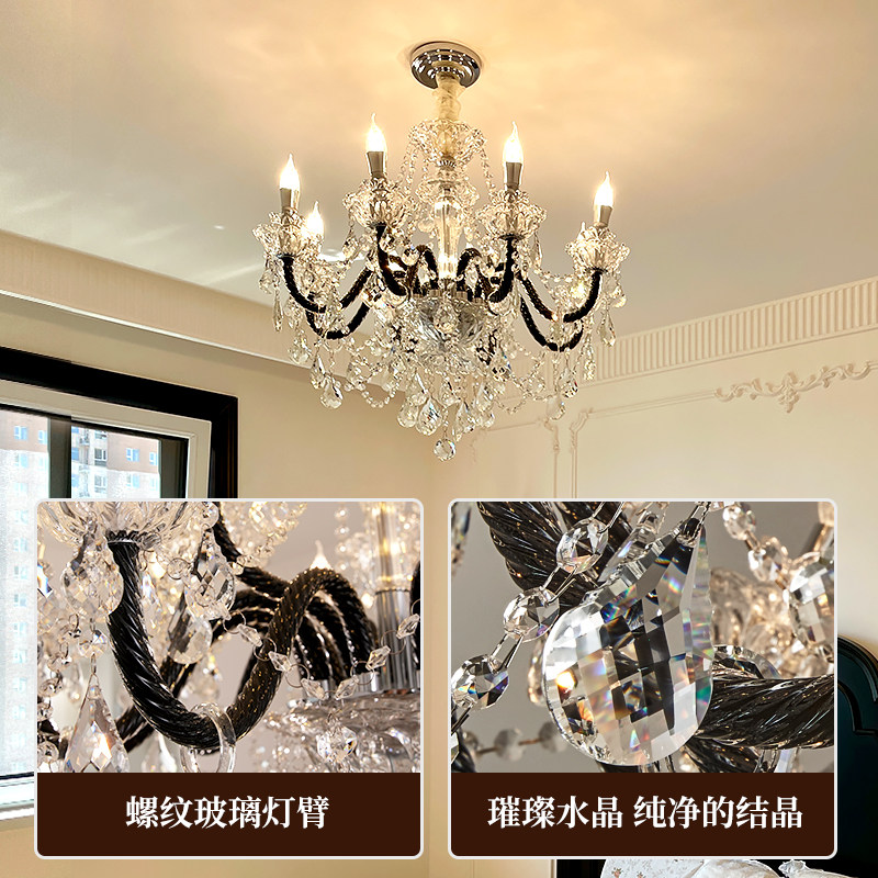飞朵 法式水晶吊灯黑色复古风客厅灯卧室轻奢餐厅灯高档国补灯具