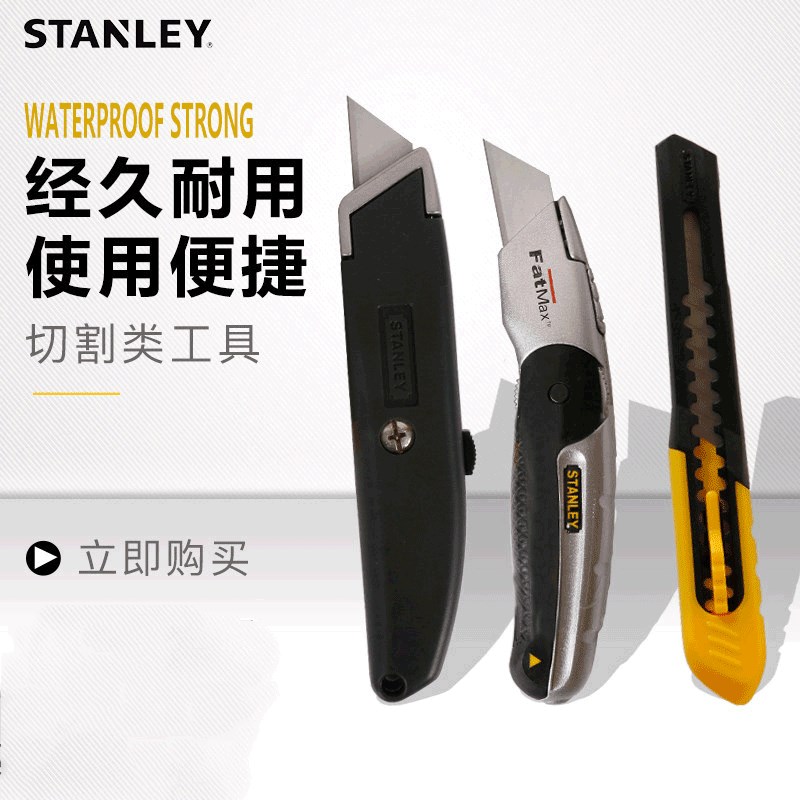史丹利旋转割刀重型折叠美工刀不锈钢裁纸刀旋钮自锁多用割刀刀片