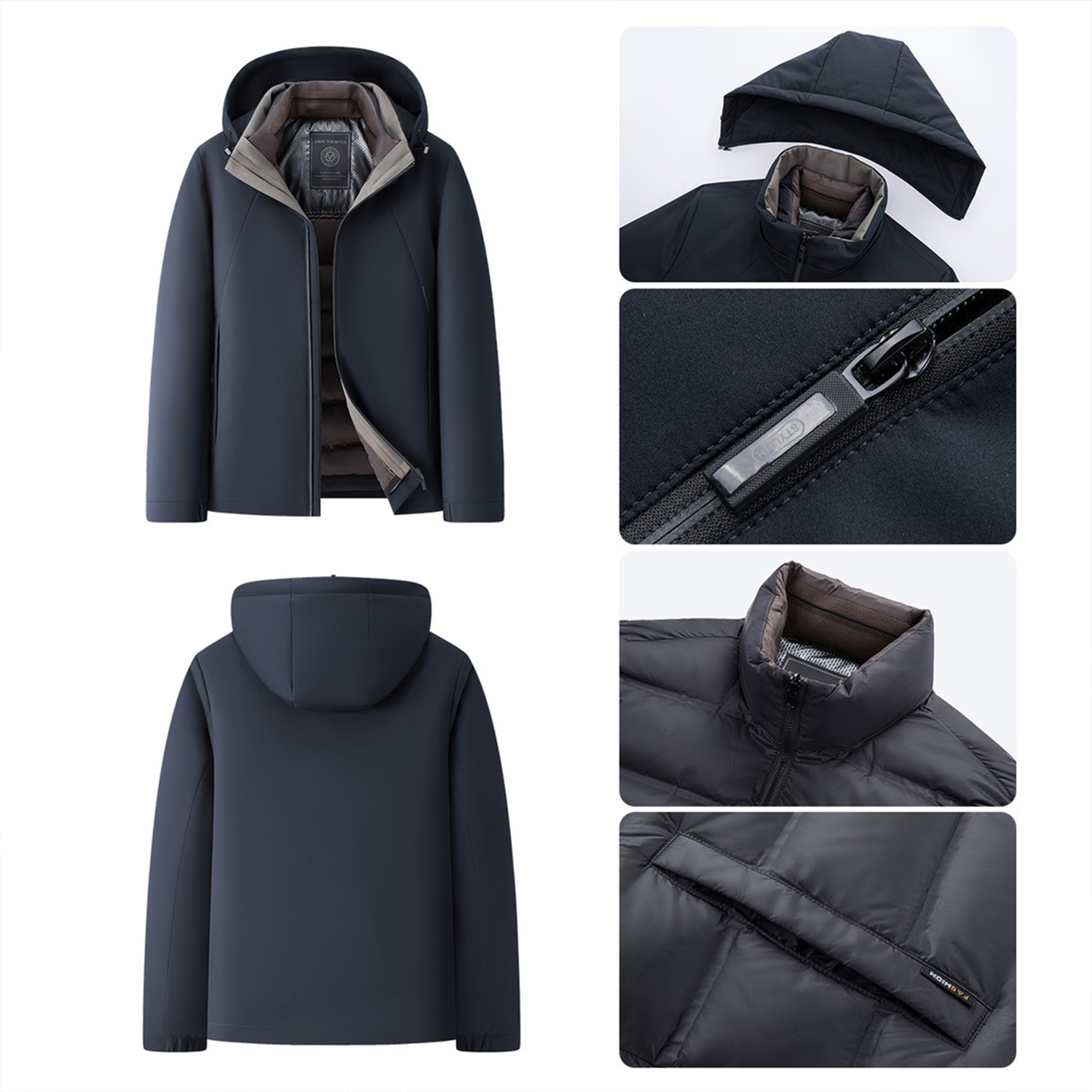 罗蒙男士加厚鹅绒服冬季新款商务休闲可拆内胆防风保暖羽绒服