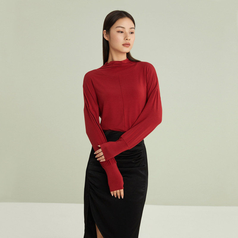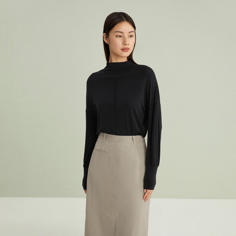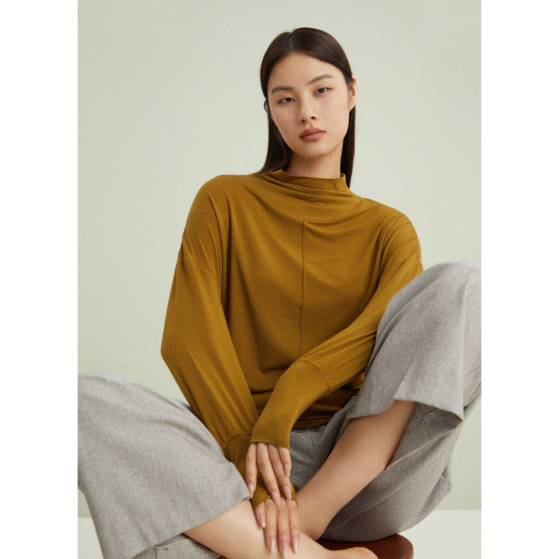 YINER LIFE天丝山羊绒保暖内衣女士半高领打底衫带杯肌底衣冬季