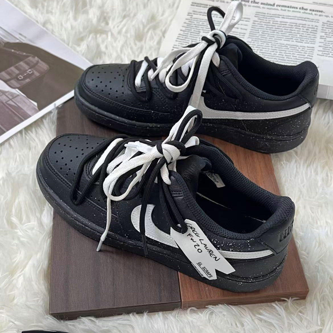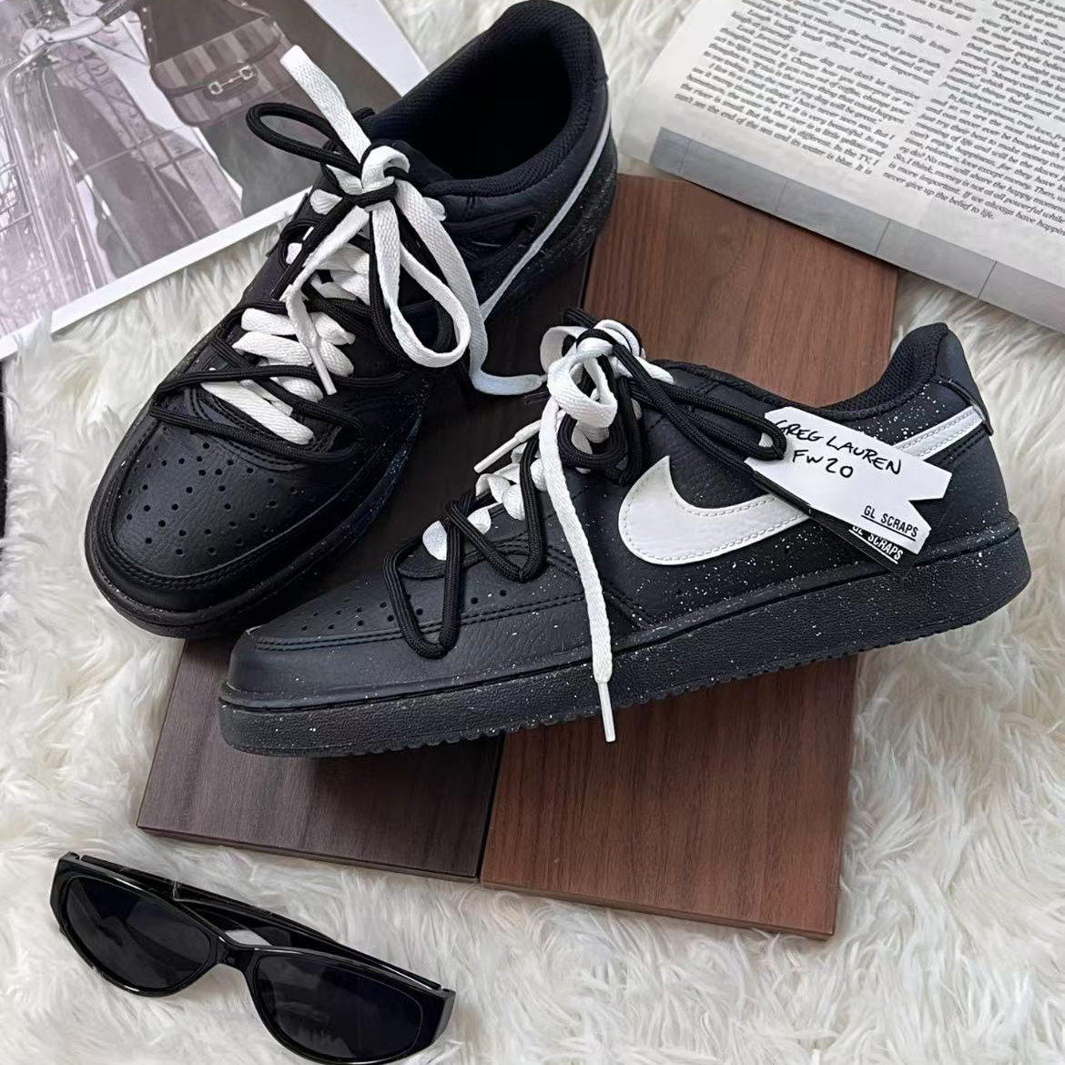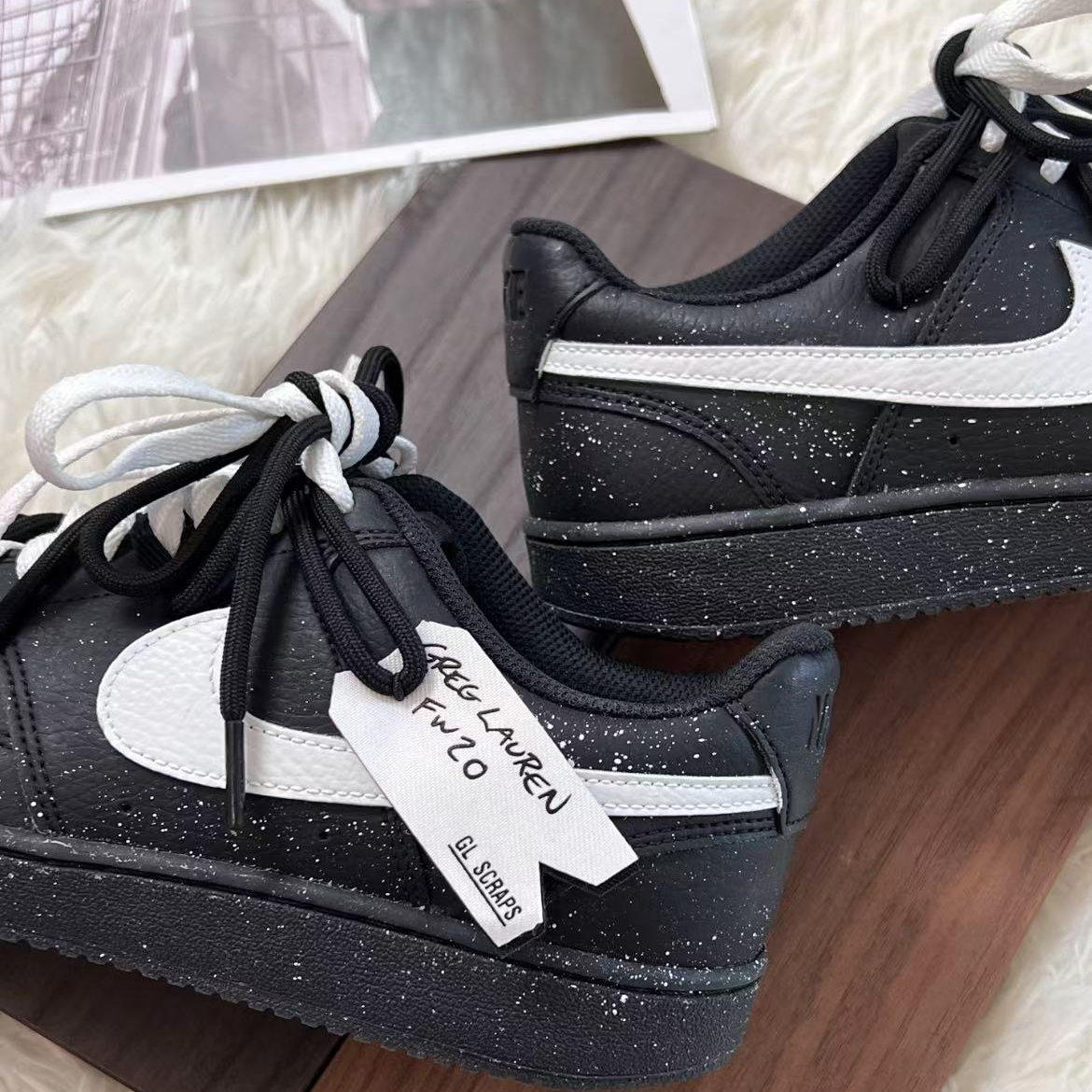 【定制球鞋】Nike Court Vision Low 黑桃契约板鞋 男女同款 黑白