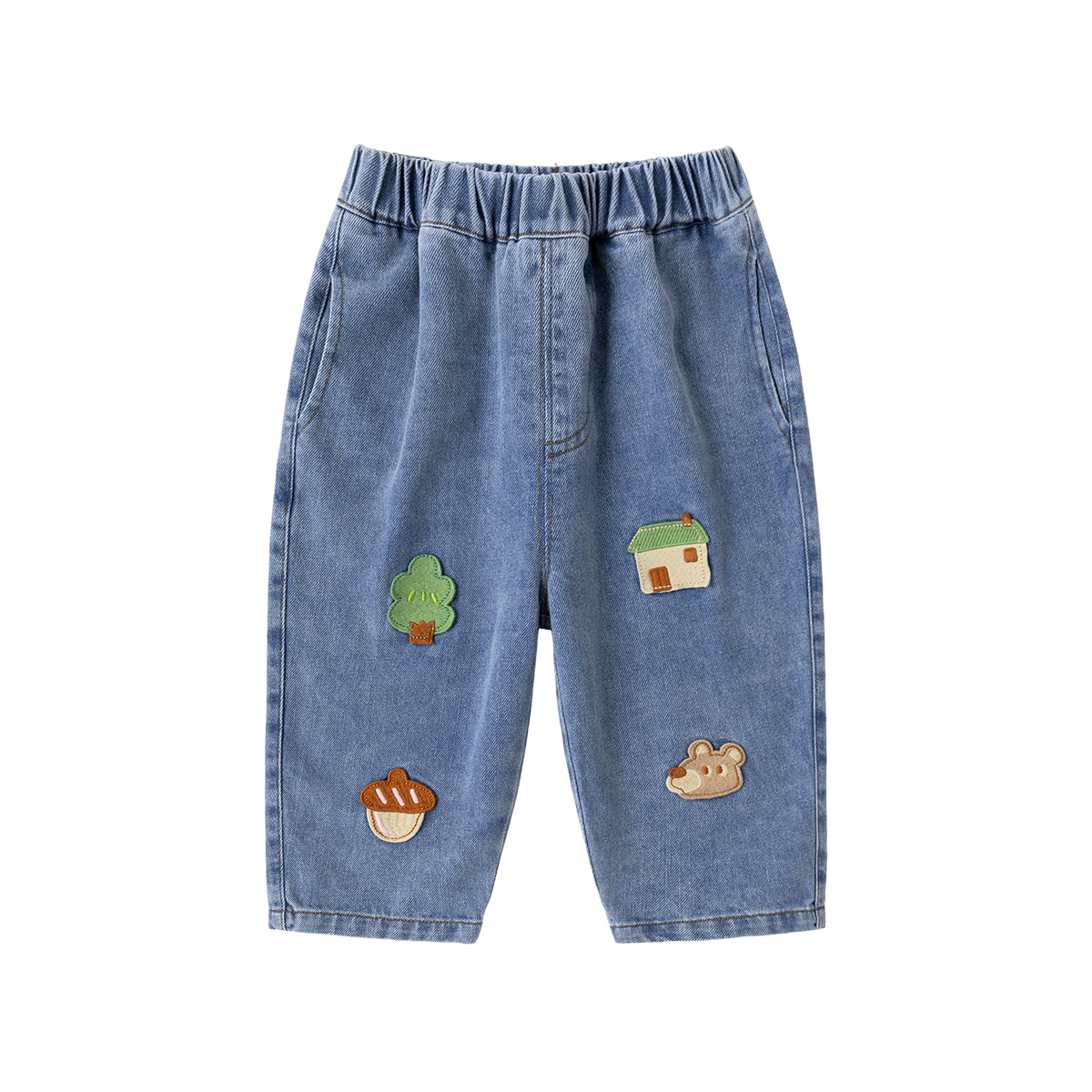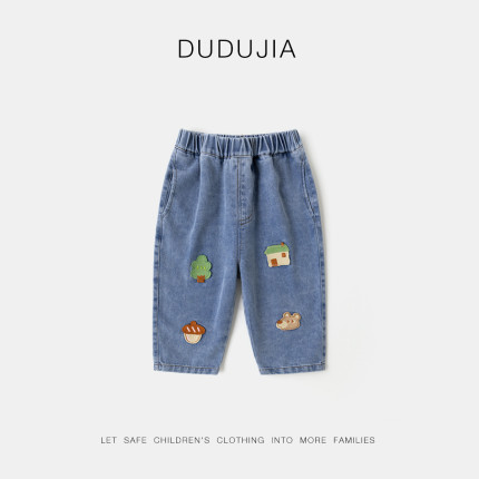 嘟嘟家男童牛仔裤春秋女童休闲裤新款儿童长裤宝宝裤子男宝运动裤