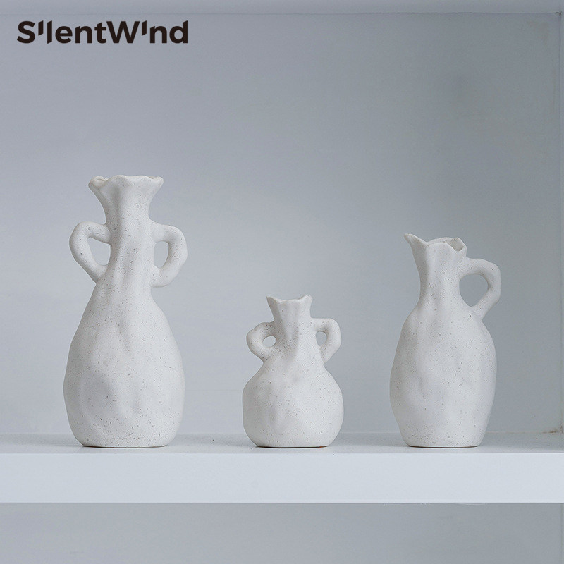 ins侘寂风素胚陶瓷花瓶组合摆件素色小号客厅书房电视柜装饰花器