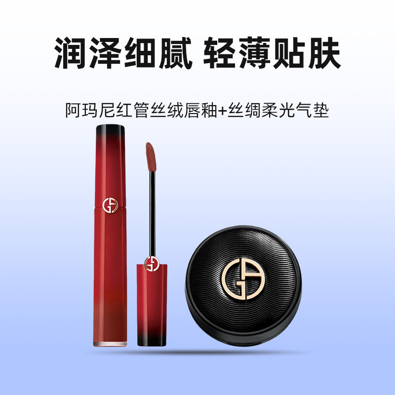 【自营】GIORGIO ARMANI/阿玛尼红管丝绒唇釉405P+丝绸柔光气垫#1