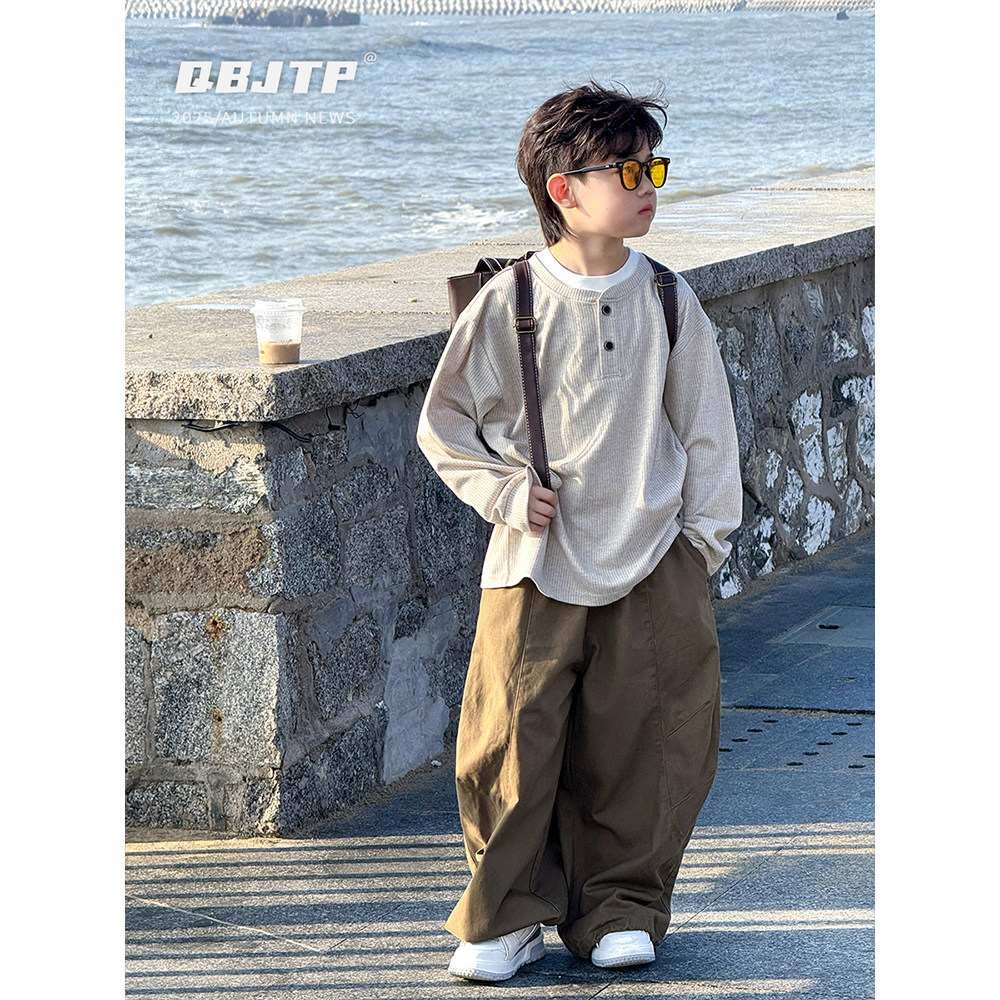 男童长袖T恤春秋儿童日系假两件