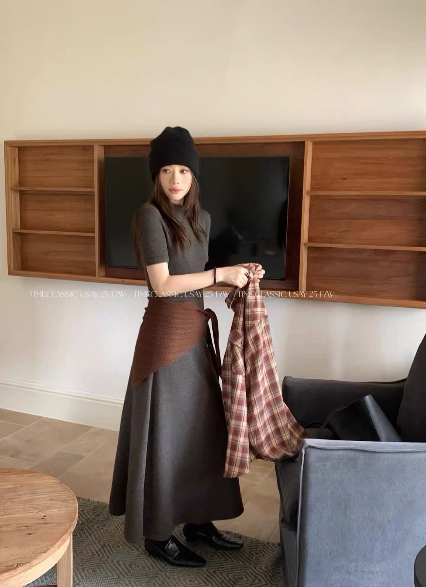 韩系25秋冬新时尚设计感高级气质羊毛针织连衣裙显瘦外套百搭神器