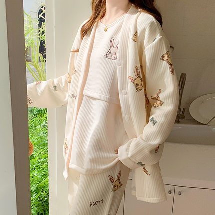 秋冬空气棉月子服三件套哺乳睡衣