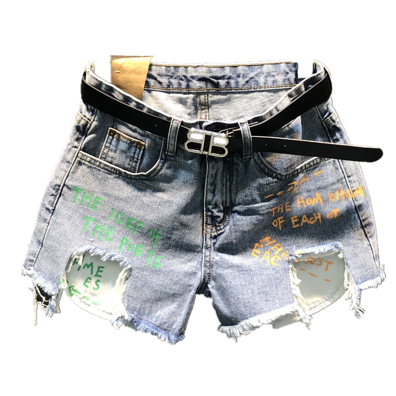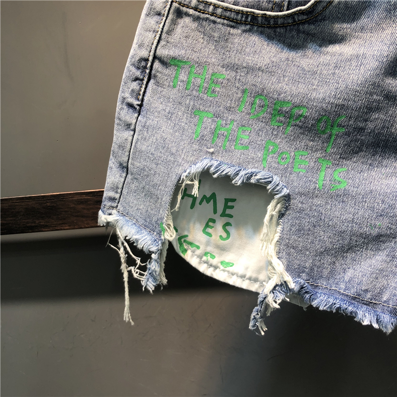 【特价清仓】牛仔短裤女夏季百搭破洞港味口袋字母显瘦阔腿热裤