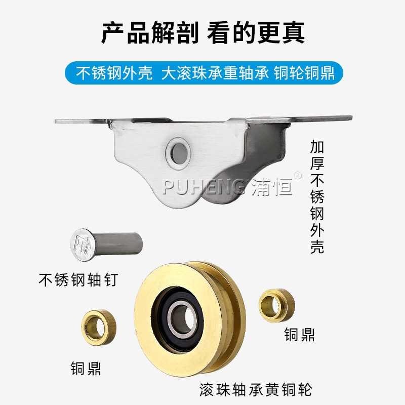 老式推拉木门下轨道轴承铜轮衣橱柜移门滑轮下轮趟门凹槽轮子配件