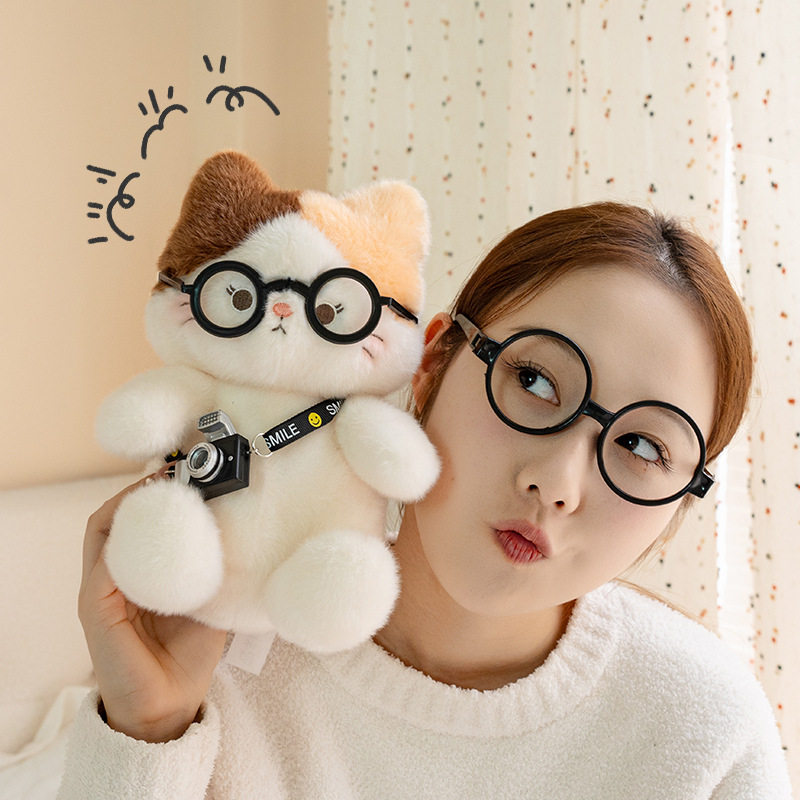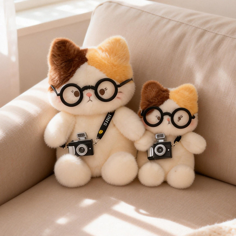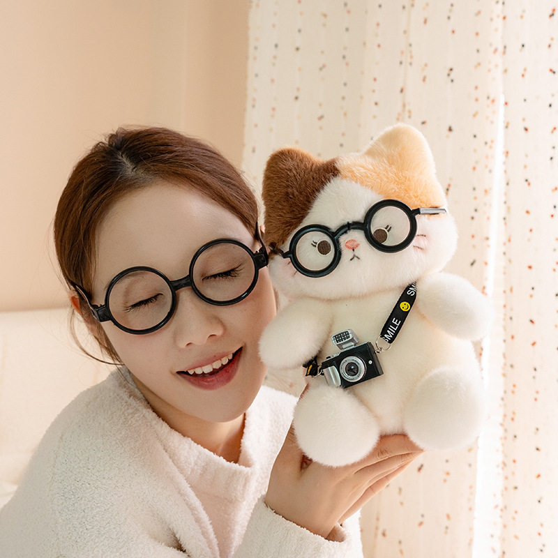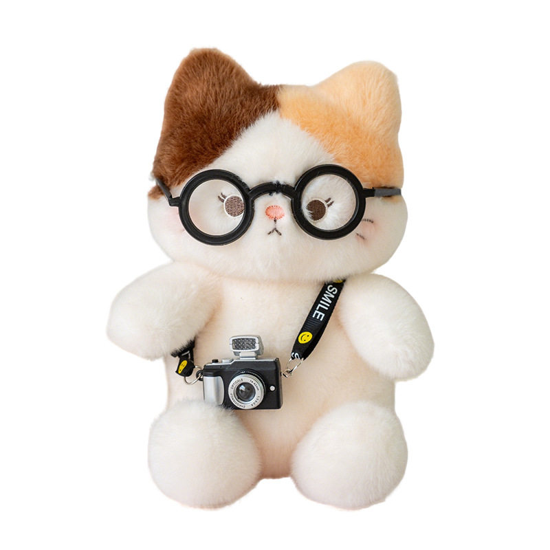 软萌布丁三花猫毛绒玩具陪伴桌伴眼镜相机款猫咪玩偶