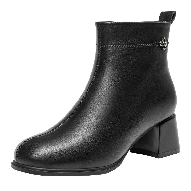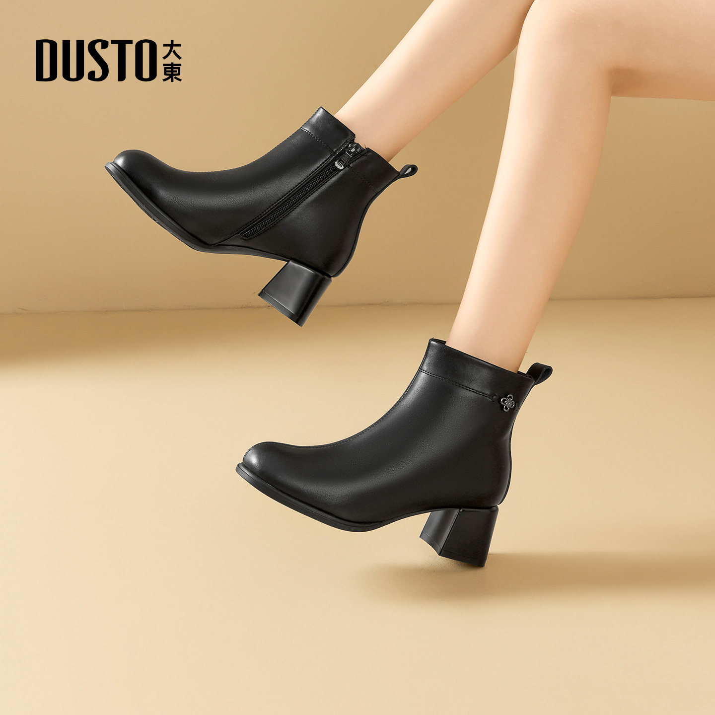 大东加绒粗跟短靴女2025新款冬季黑色高跟靴子女款小个子切尔西靴