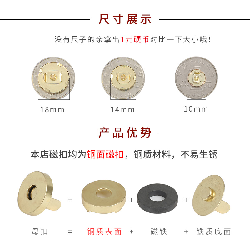 磁铁纽扣箱包磁扣大衣隐形暗扣手工包包按扣金属四合扣吸铁扣免缝