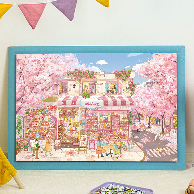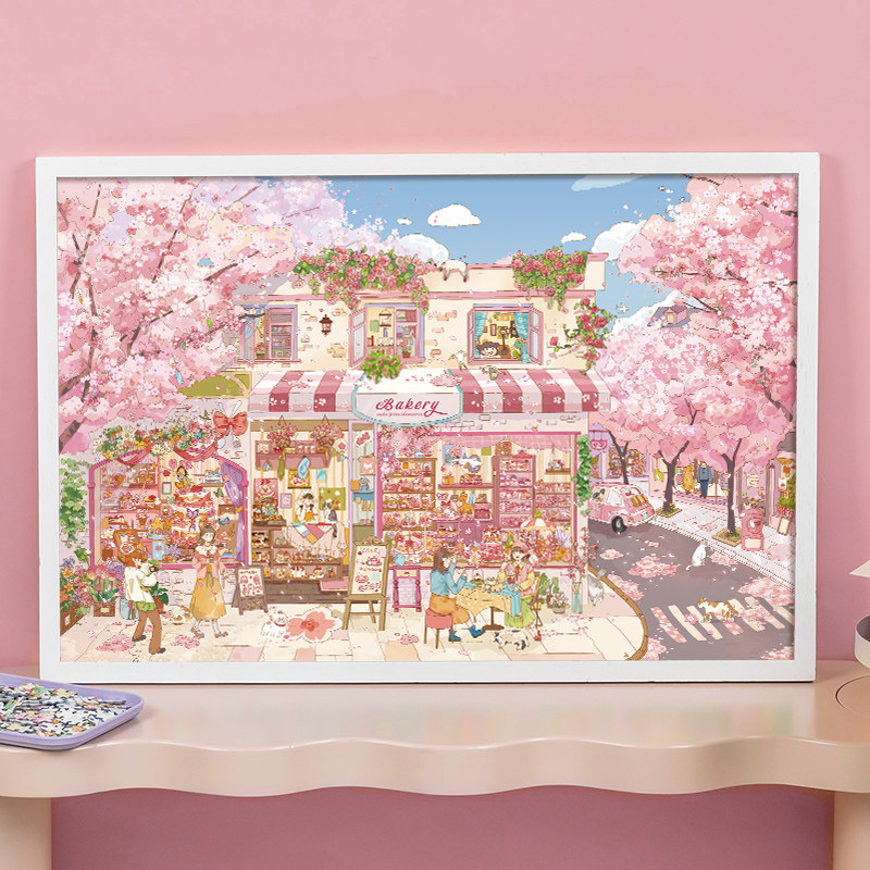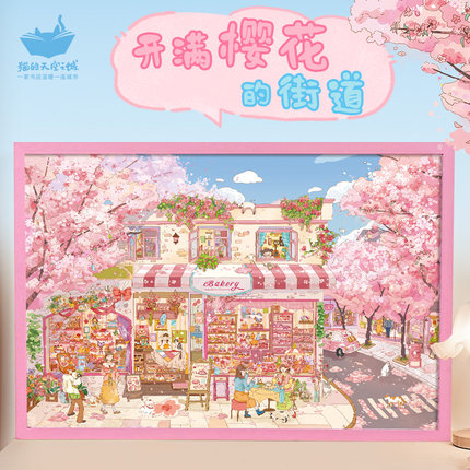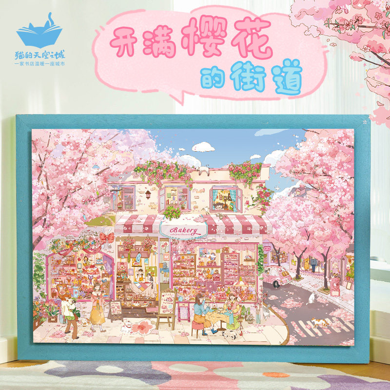 猫的天空之城拼图1000片开满樱花的街道成人版春日赏樱治愈拼图
