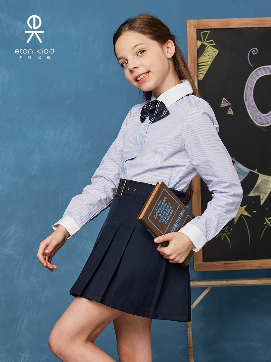 伊顿纪德校服 男女童学生衬衫女童衬衫长袖儿童条纹衬衣10C268