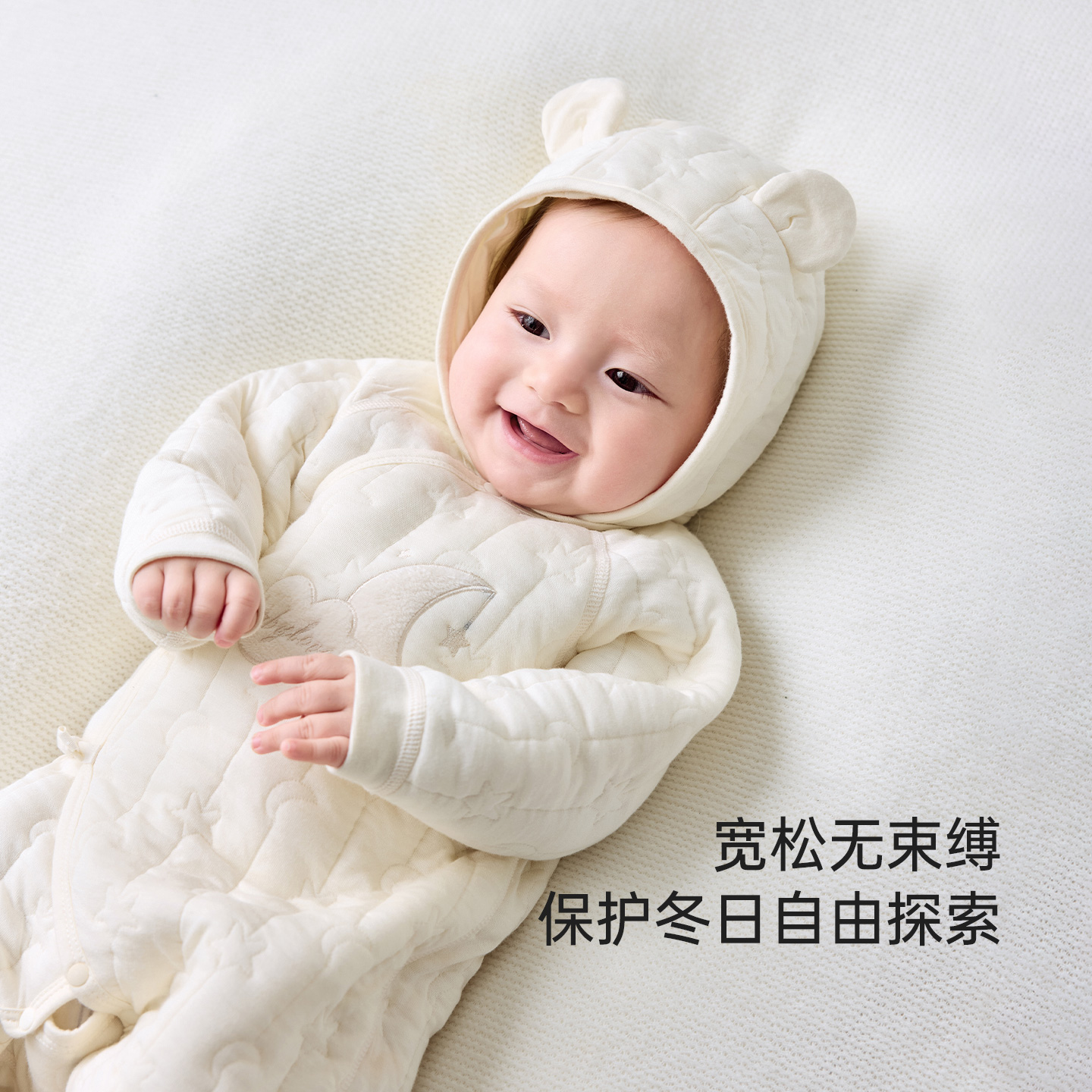 babylove新生儿连体衣秋冬薄夹棉保暖哈衣宝宝和尚服星月婴儿衣服