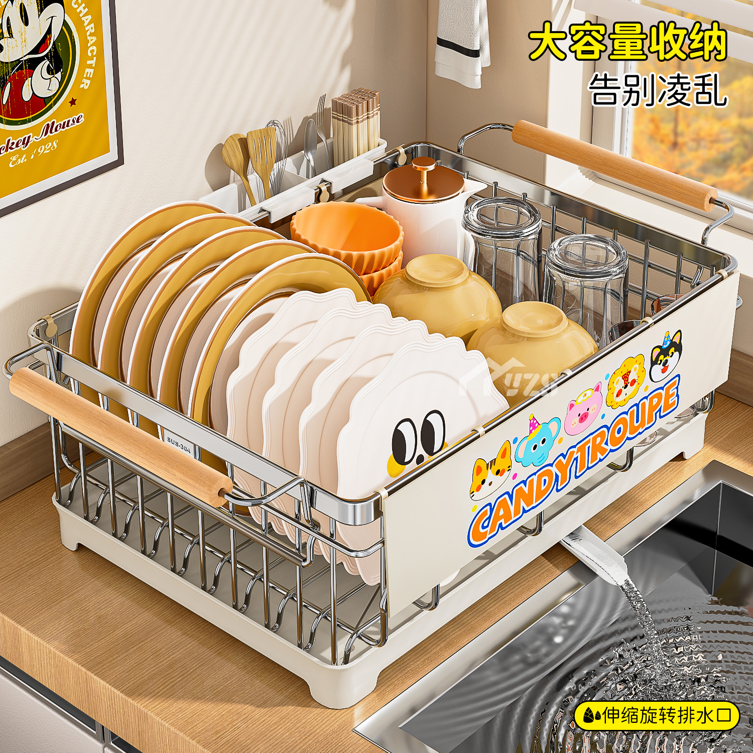304不锈钢沥水篮厨房水槽沥水架洗菜盆碗碟架洗碗池大单槽置物架