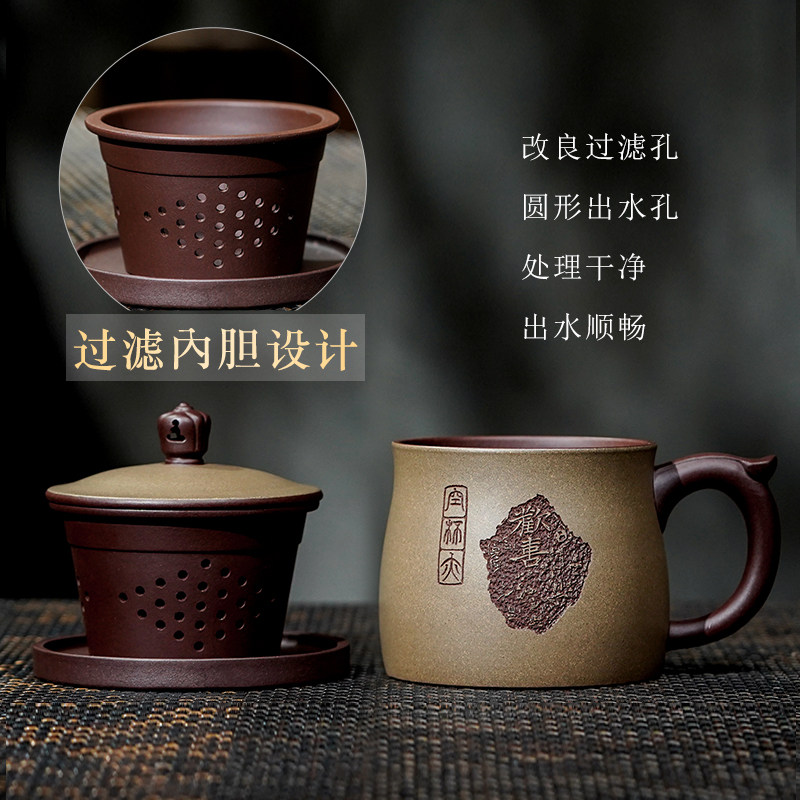 宜兴紫砂杯名家吴春艳纯手工茶杯家用泡茶杯子精品带内胆欢喜