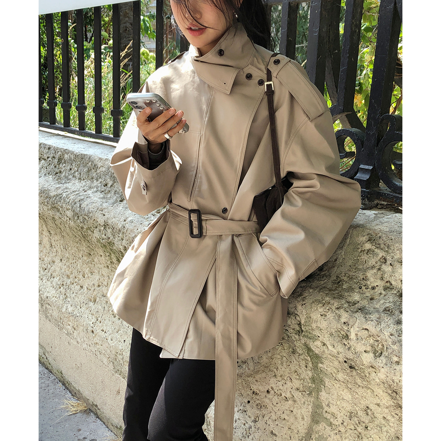 韩国法式高级感短款风衣外套女2025秋季新款气质设计感系扣上衣