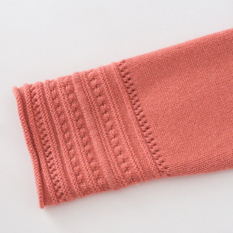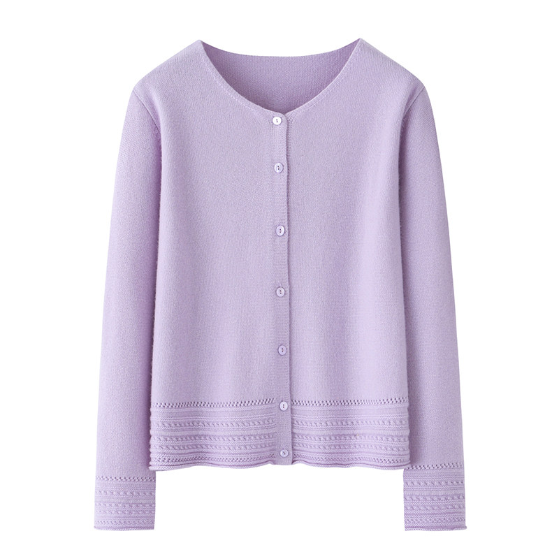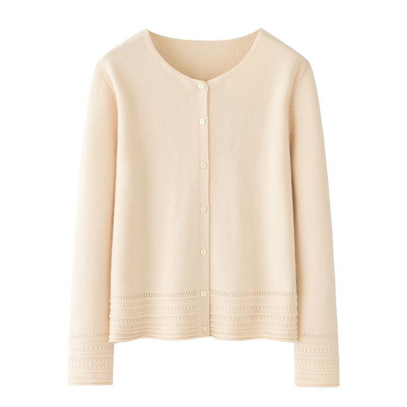 阿绒源网眼钩花羊绒女开衫鄂尔多斯市圆领加厚双股针织衫短款毛衣