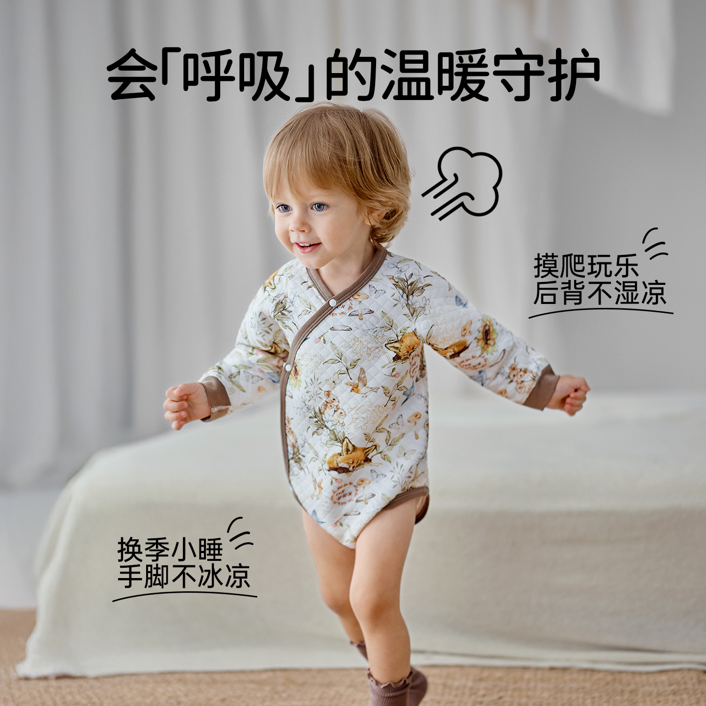 欧孕婴儿包屁衣秋冬打底新生儿夹棉加厚保暖内衣宝宝三角哈衣爬服
