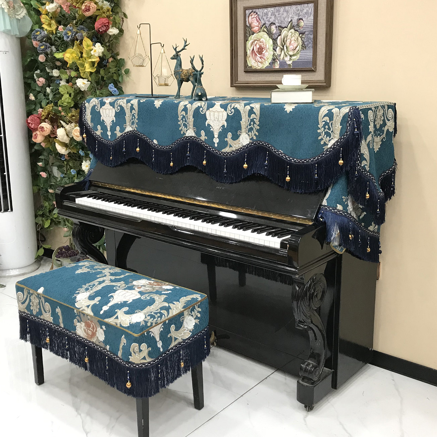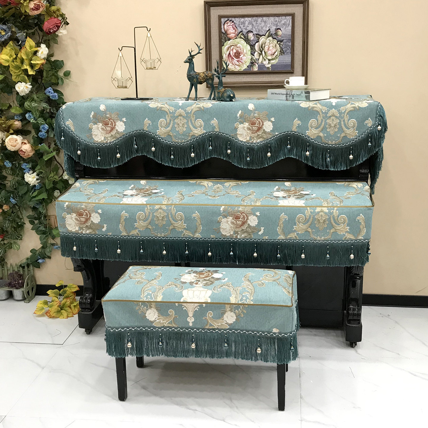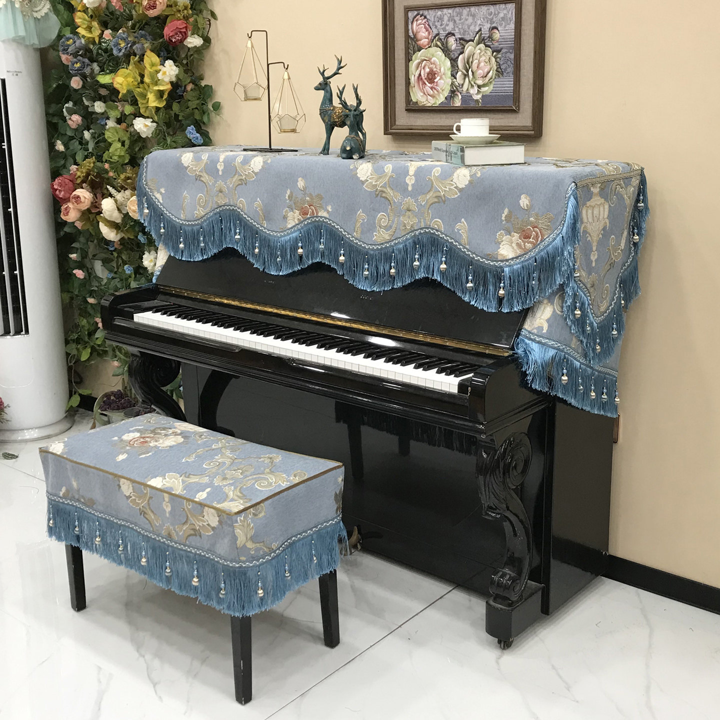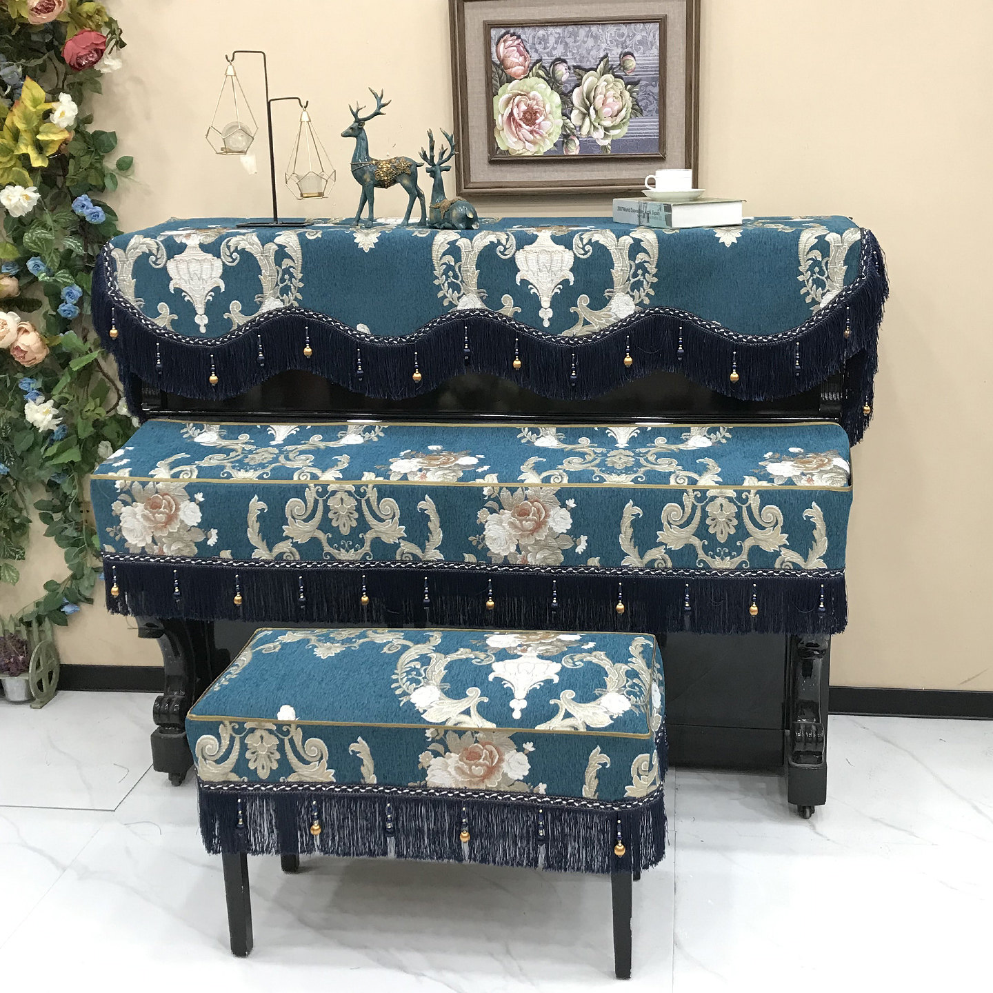 2025秋季欧式钢琴罩现代奢华半罩钢琴防尘罩三件套简约盖布琴凳罩
