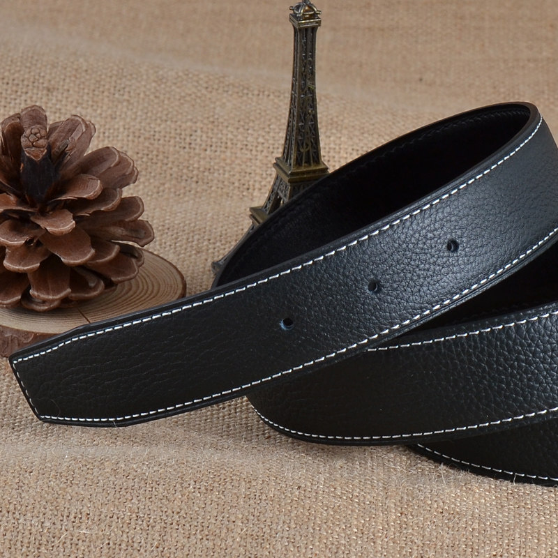 头层牛皮H皮带条男士无扣皮带真皮女打孔针扣平滑扣带身无头腰带