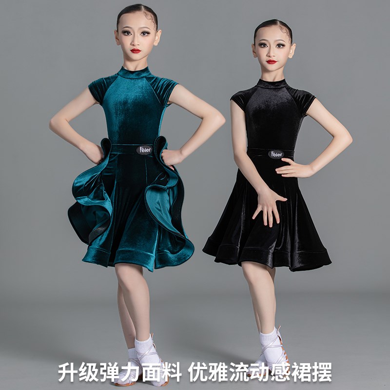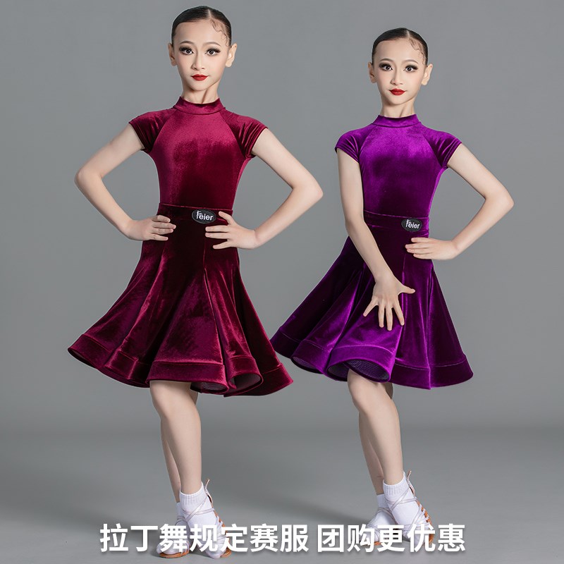 现货速发2025新款拉丁舞服装童比赛规定赛服儿童标准丝绒练功服高
