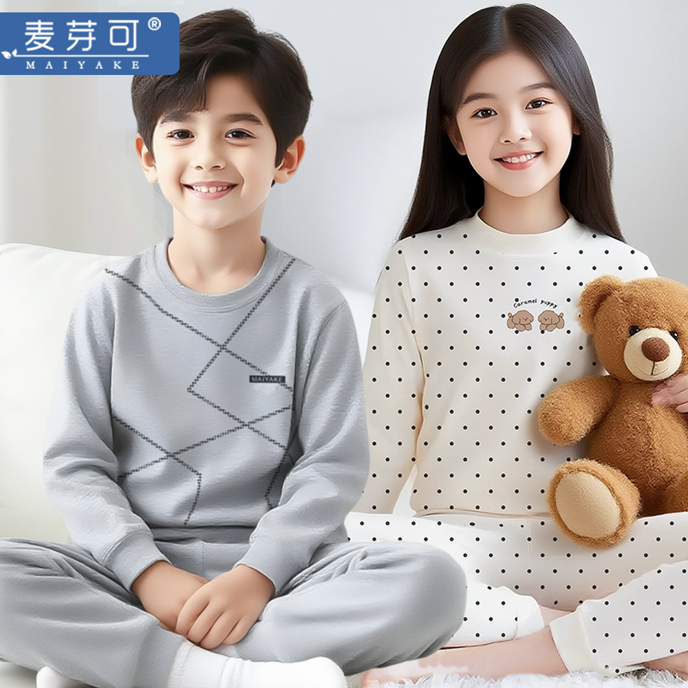 斑马日记8270儿童纯棉家居服套装秋冬季新款男童女童秋衣秋裤睡衣