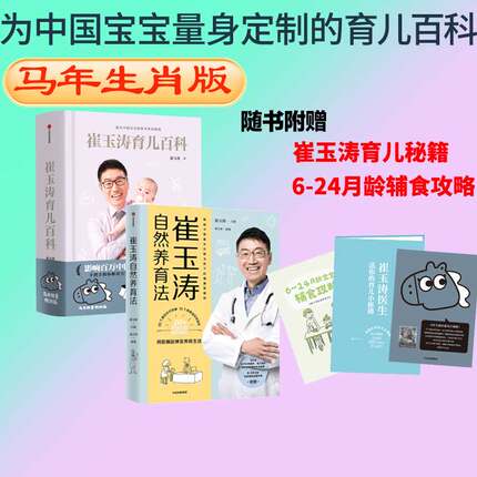 【马年生肖新版】崔玉涛育儿百科+崔玉涛自然养育法套装2册吃的艺术家庭育儿将医嘱延伸至养育生活升级为孩子健康管理师中信出版