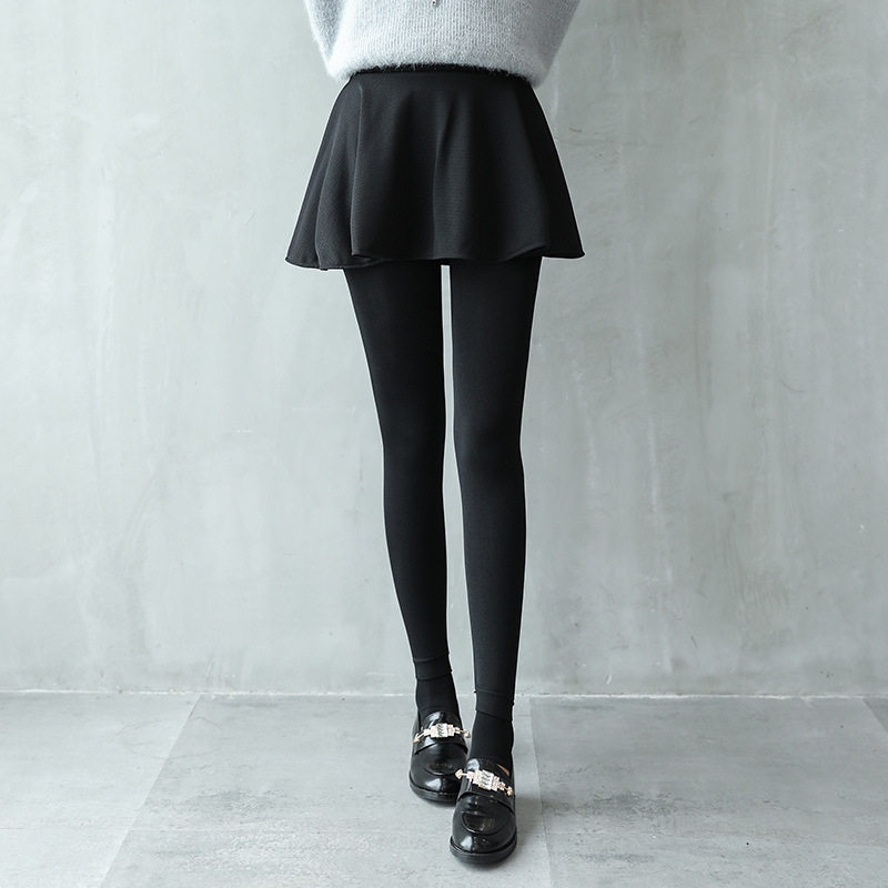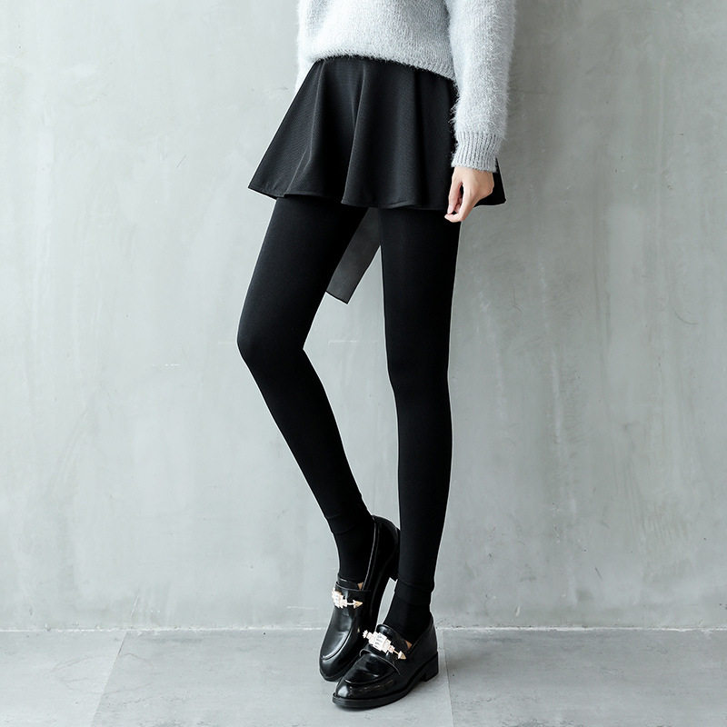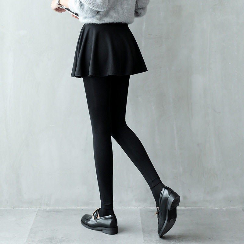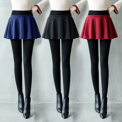 秋冬季假两件打底裤裙裤女加绒加厚高腰显瘦外穿大码踩脚百褶裤袜