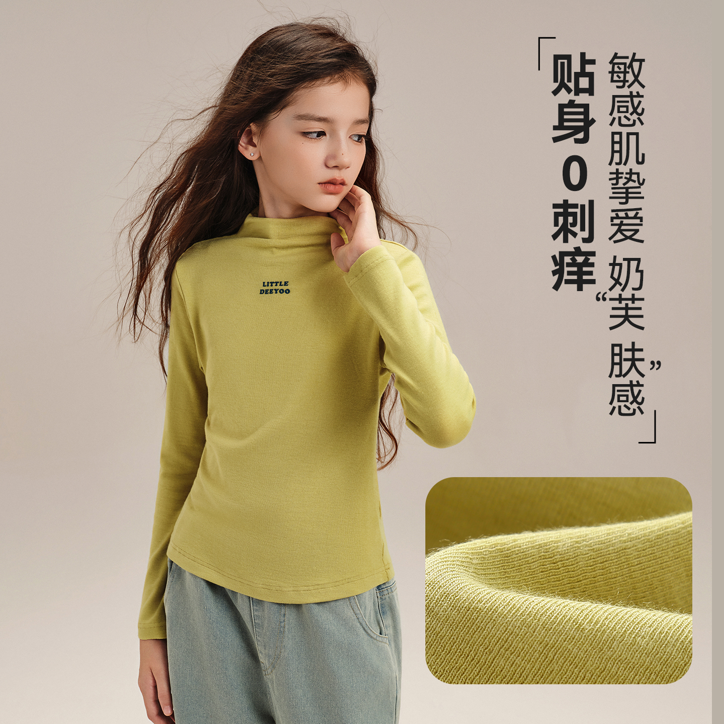 女童中高领打底衫亲肤不刺痒