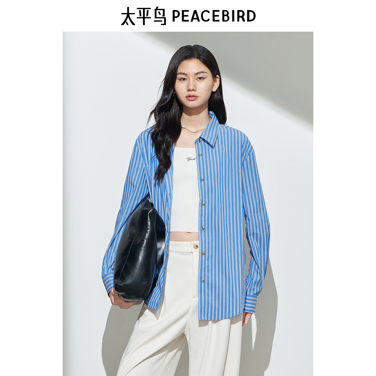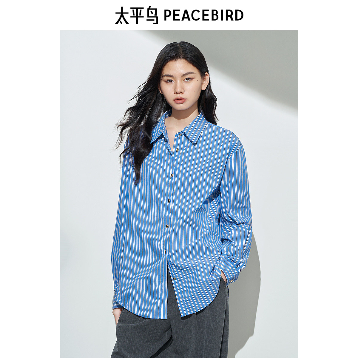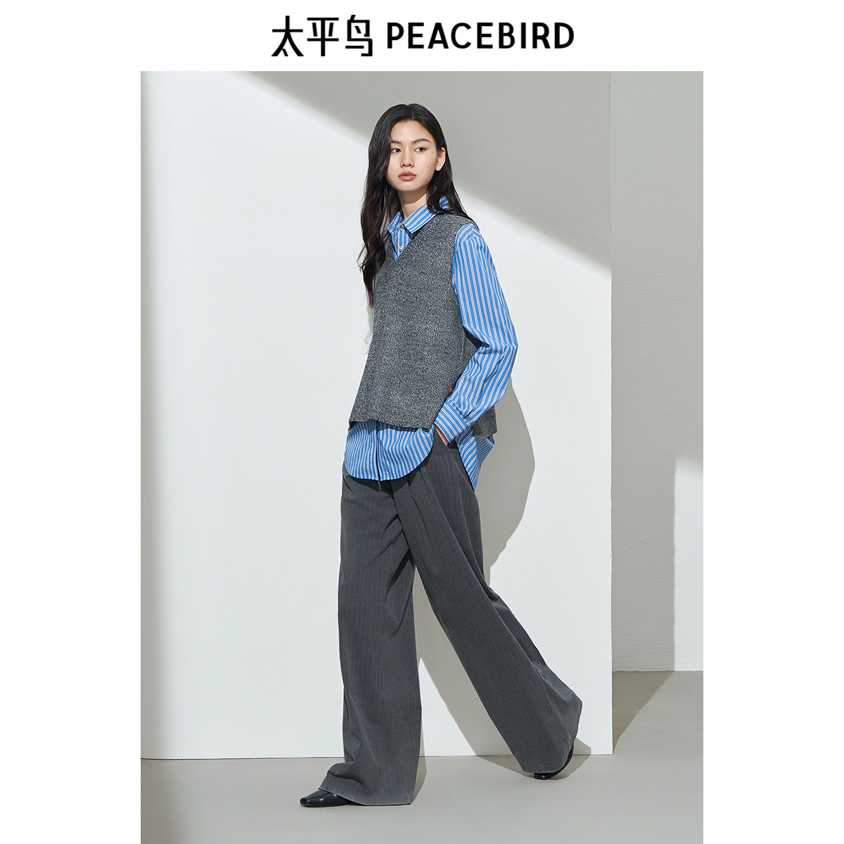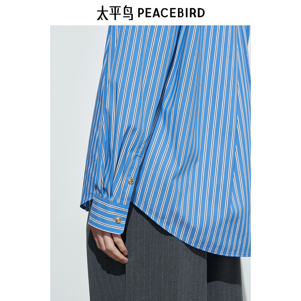 太平鸟女装2025年冬季新款时尚衬衣品质两件套条纹衬衫A1CAE4480