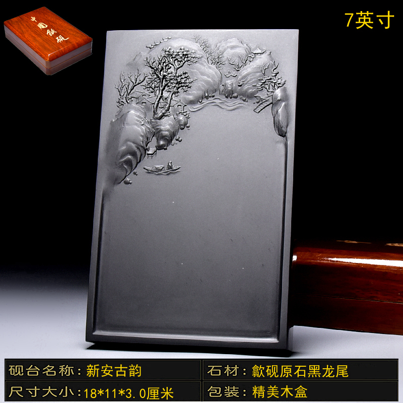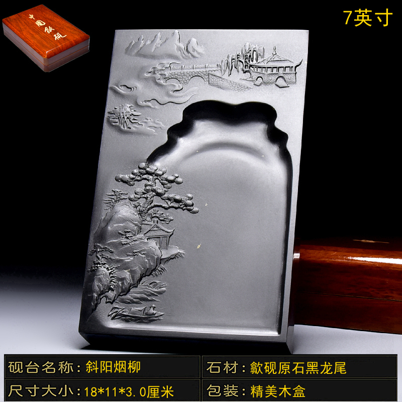 歙砚精品 江南水乡 老坑玉带方形砚台原石实用收藏送礼龙尾砚端砚
