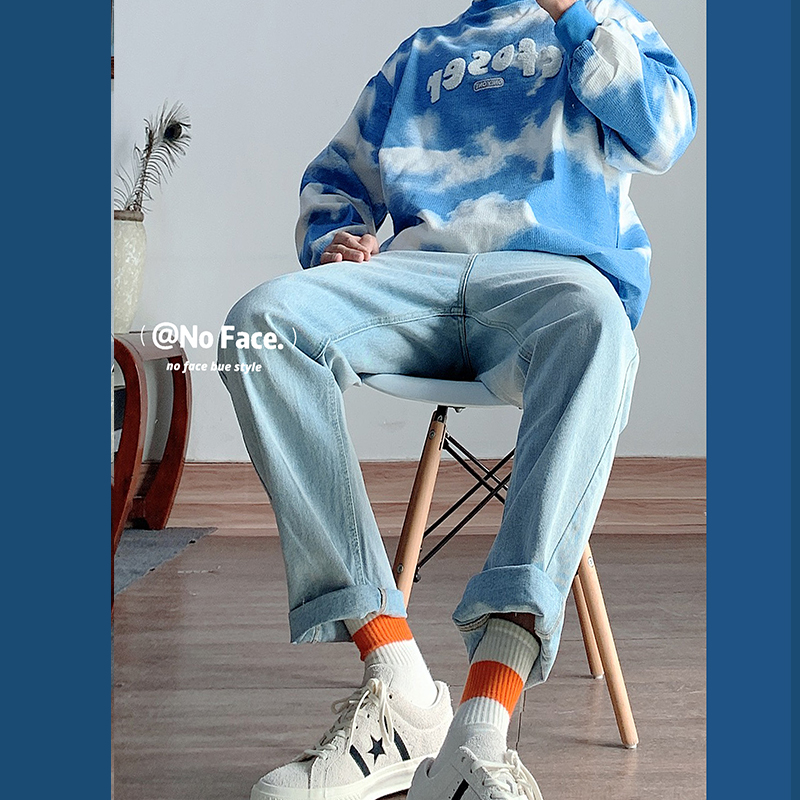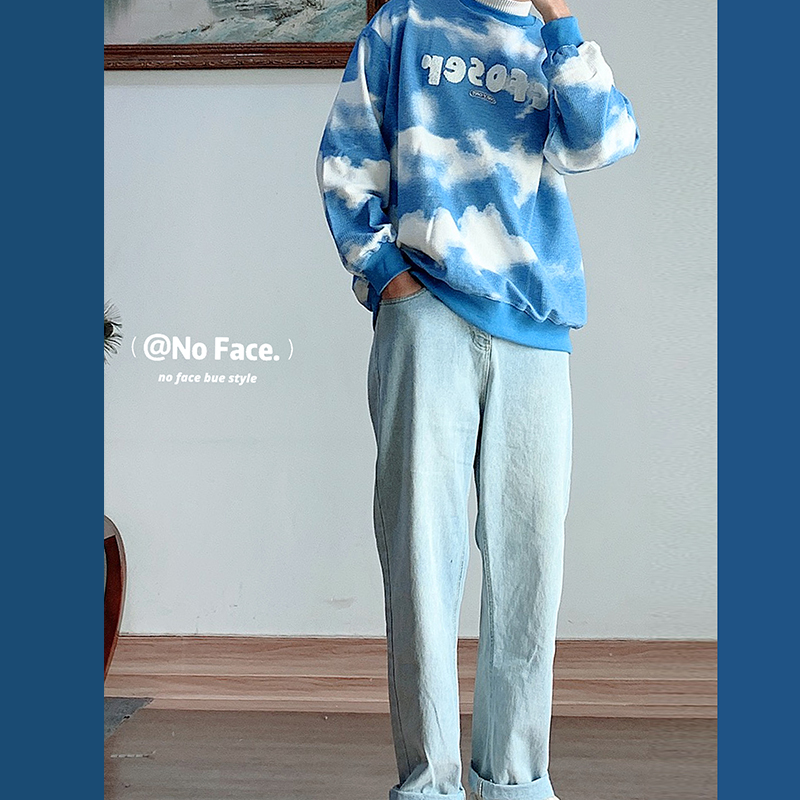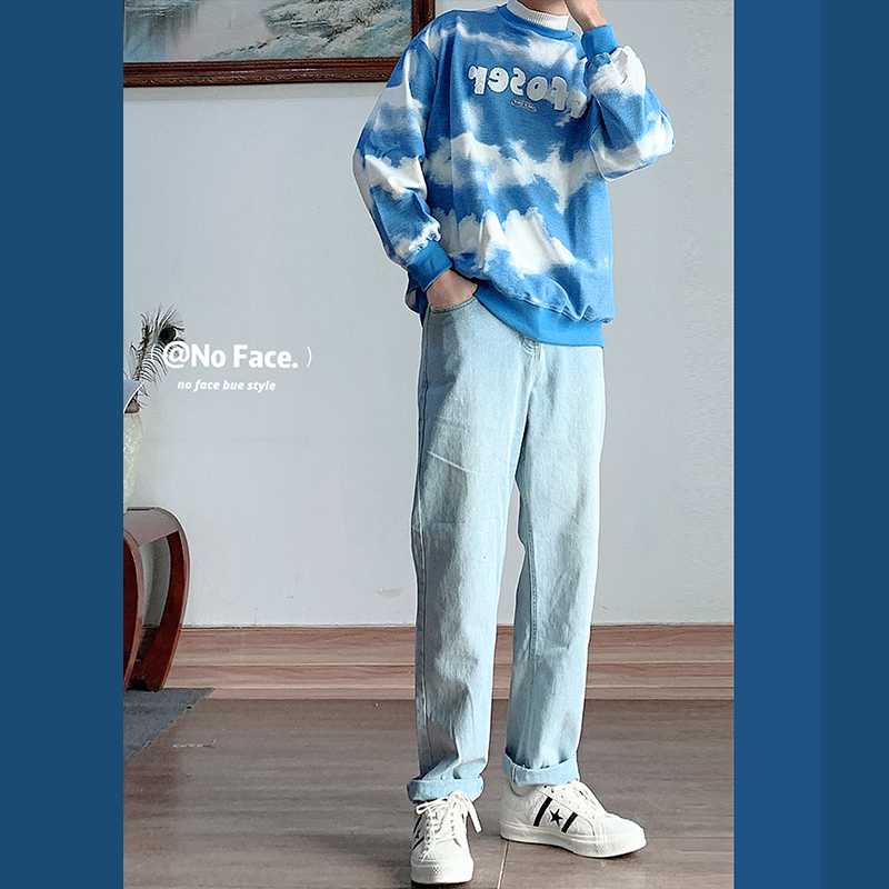 浅蓝色磨白基本款简约牛仔裤 / ins风天空蓝扎染圆领卫衣 UMSSUSP