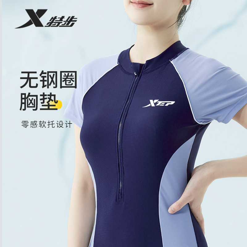 特步泳衣女2025年新款时尚保守遮肚显瘦连体平角大码泡温泉游泳衣