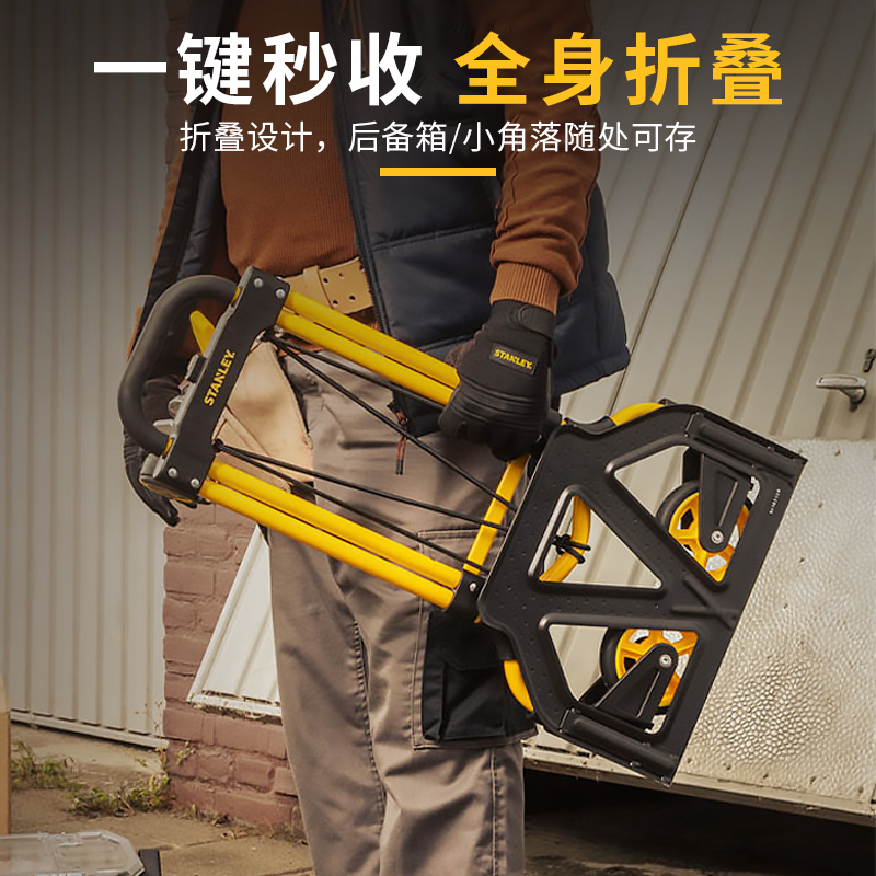 史丹利手推车二合一可折叠拉货平板车折叠多功能家用便携收纳快递