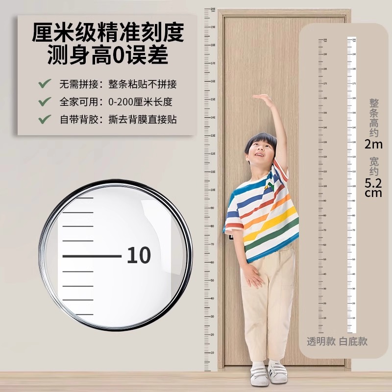 身高测量墙贴透明儿童量身高尺墙贴不伤墙可移除精准宝宝身高神器