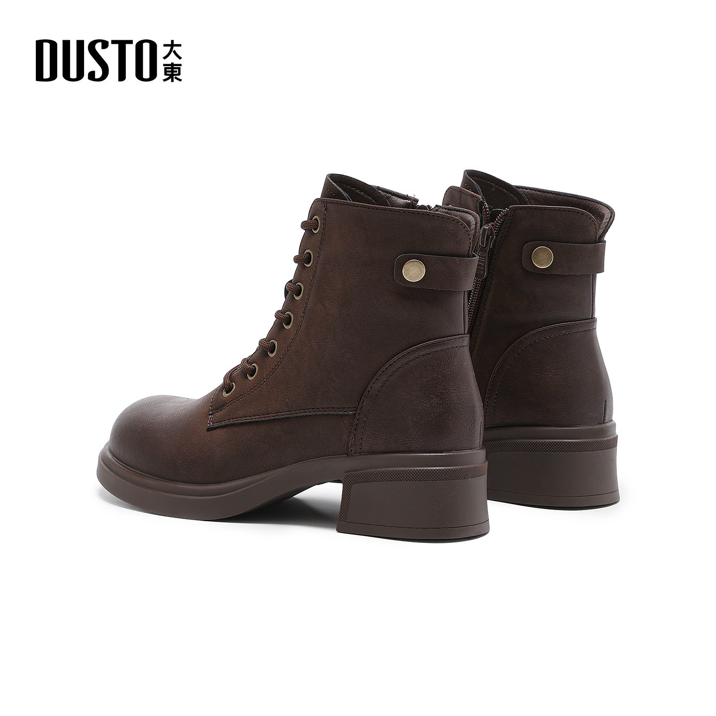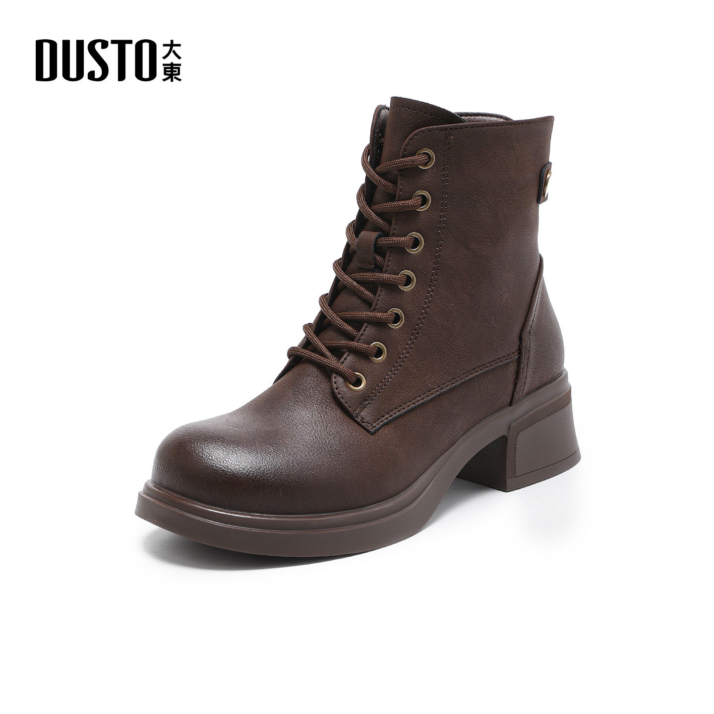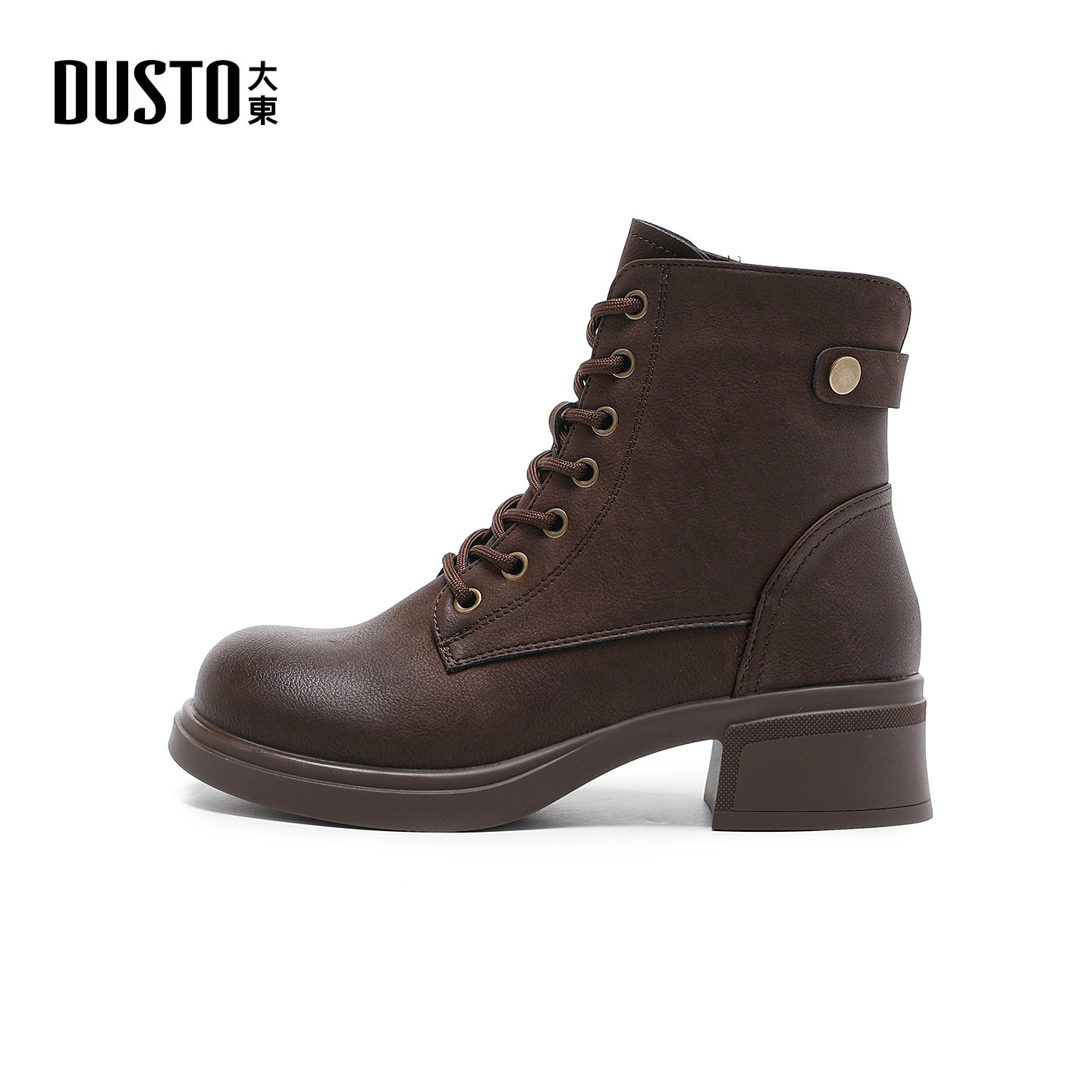 大东ddS马丁靴女2025年冬季新款系带女靴粗跟英伦风短筒厚底靴子