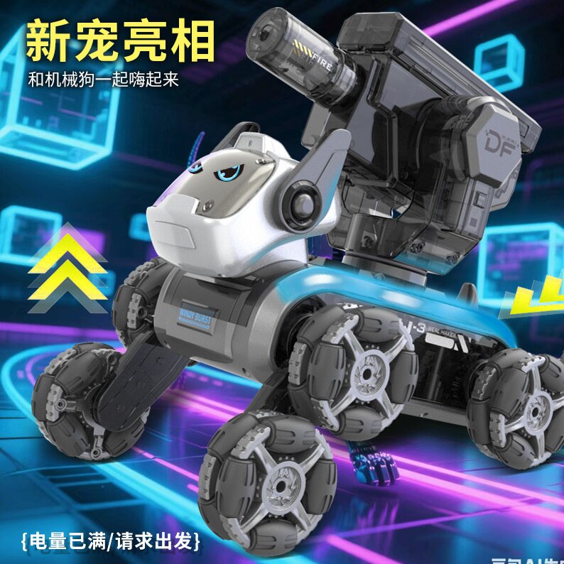 智能八轮遥控机器狗玩具儿童电动发射水弹特技机械狗车汽车可漂移