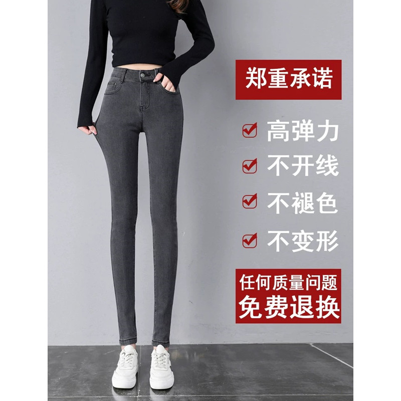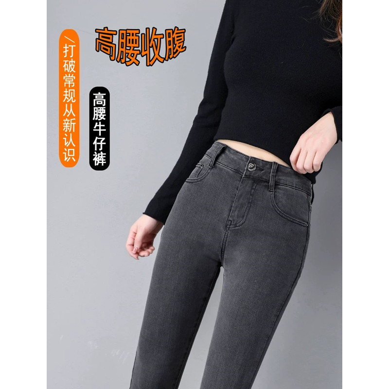 黑色牛仔裤女小脚裤加绒秋冬2025年新款高腰显瘦紧身弹力铅笔长裤