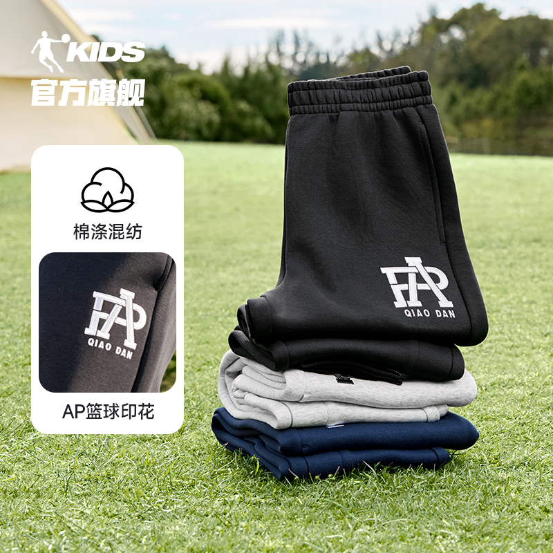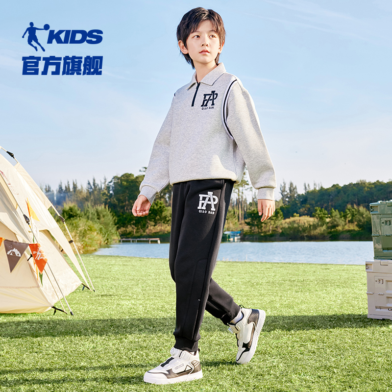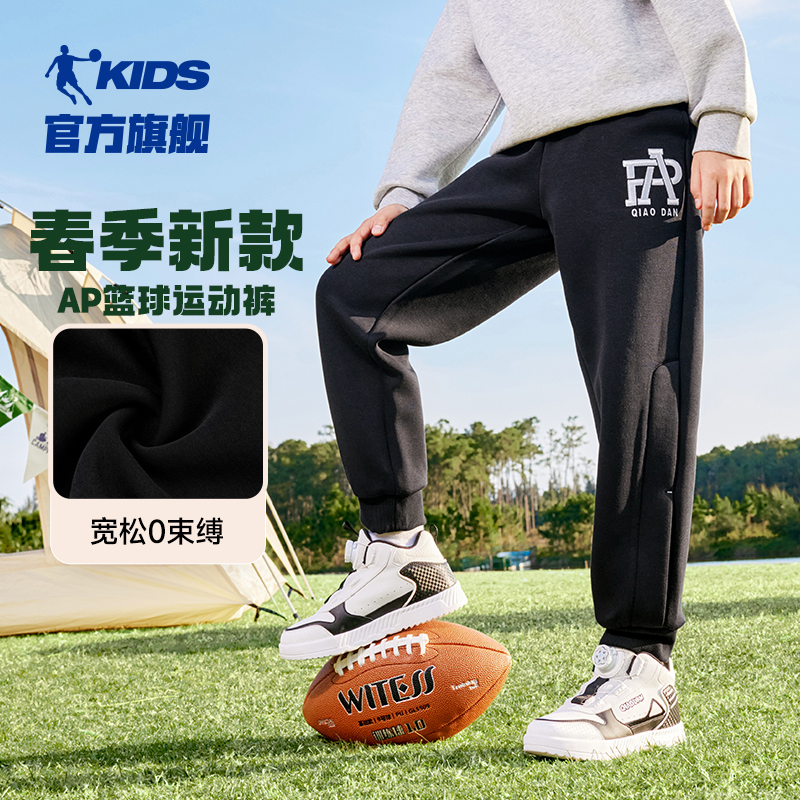乔丹童装男童裤子2025春秋季新款儿童针织休闲裤加厚中大童篮球裤