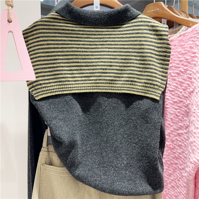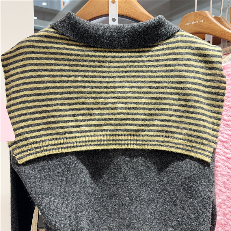 实体同款2025秋冬季新款半开扣POLO领披肩长袖套头针织衫女8198