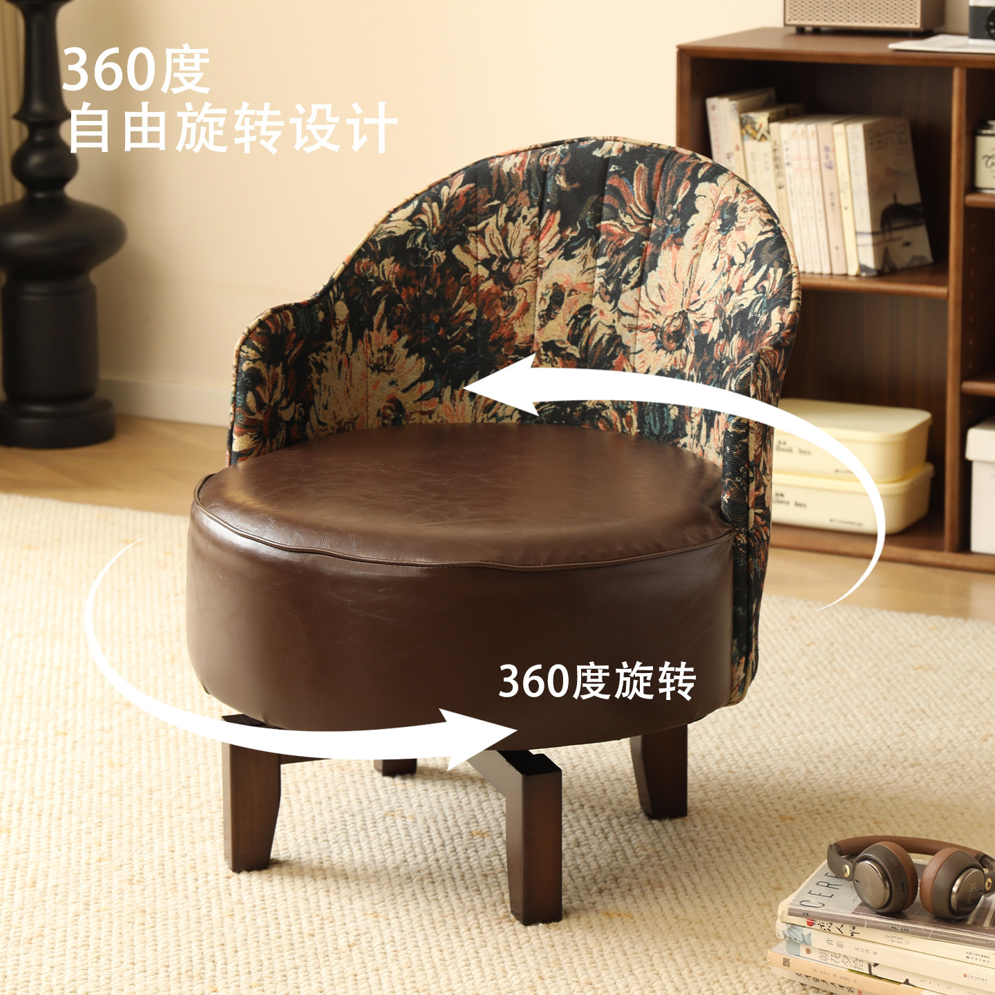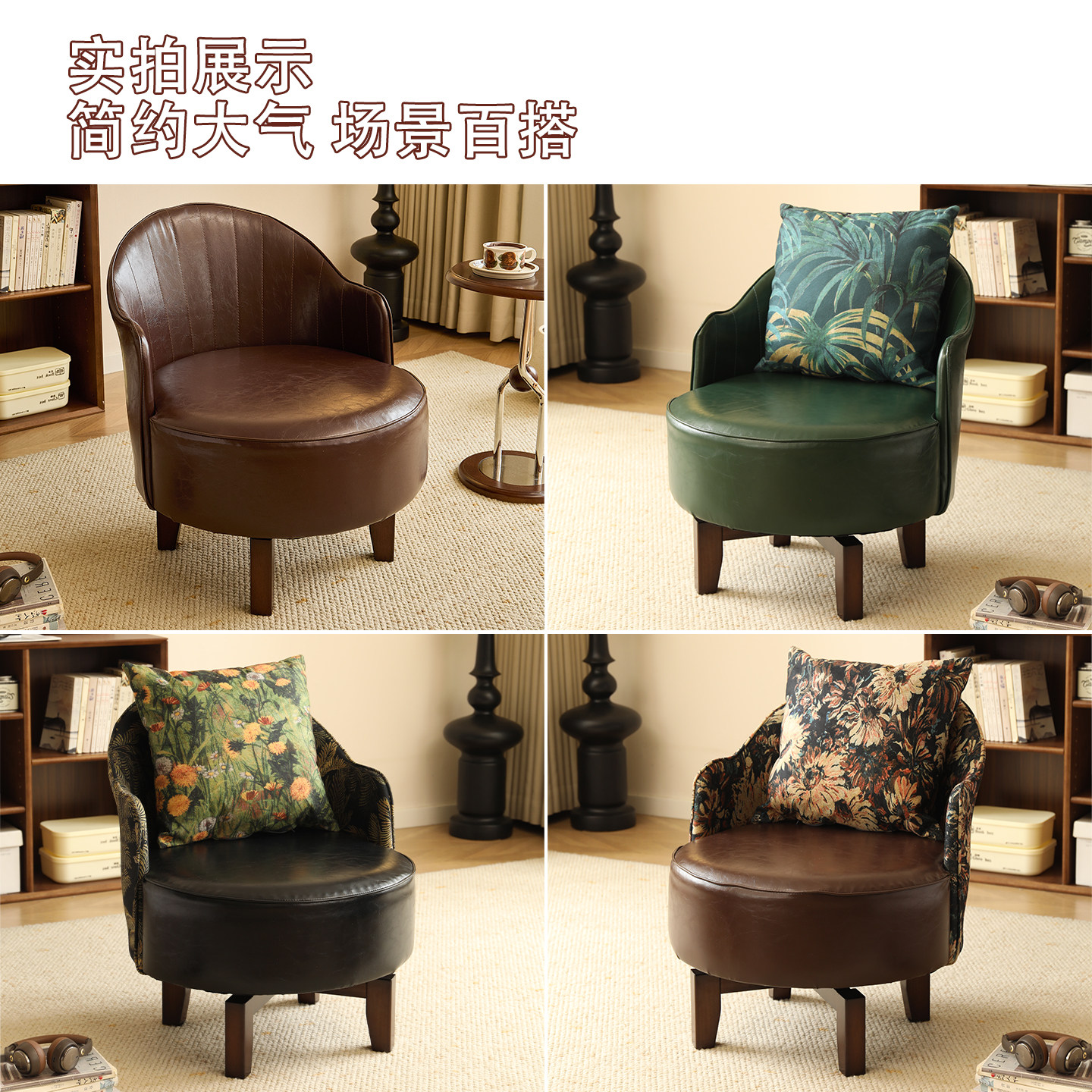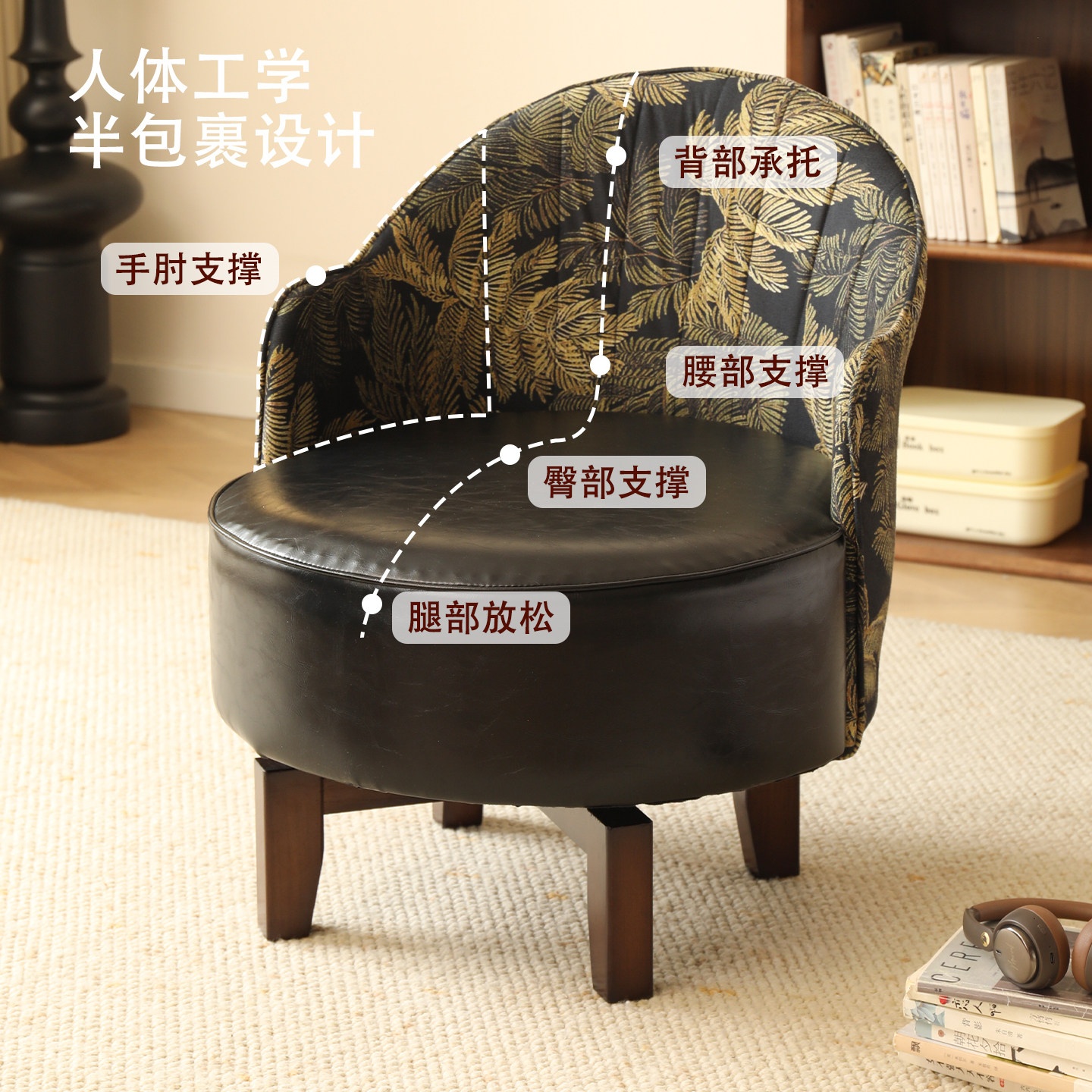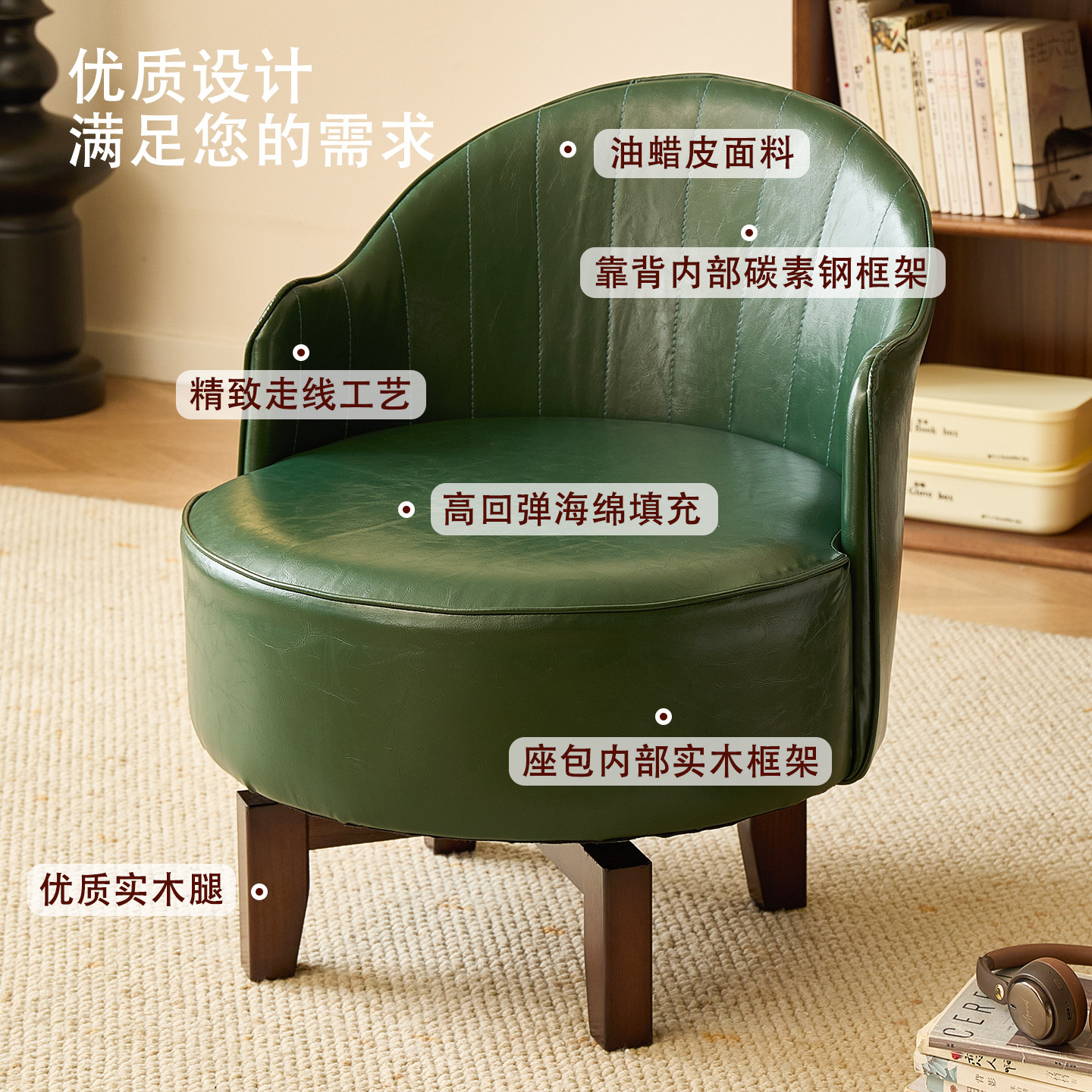 家用单人沙发实木休闲椅子客厅舒适旋转座椅久坐沙发椅卧室靠背椅
